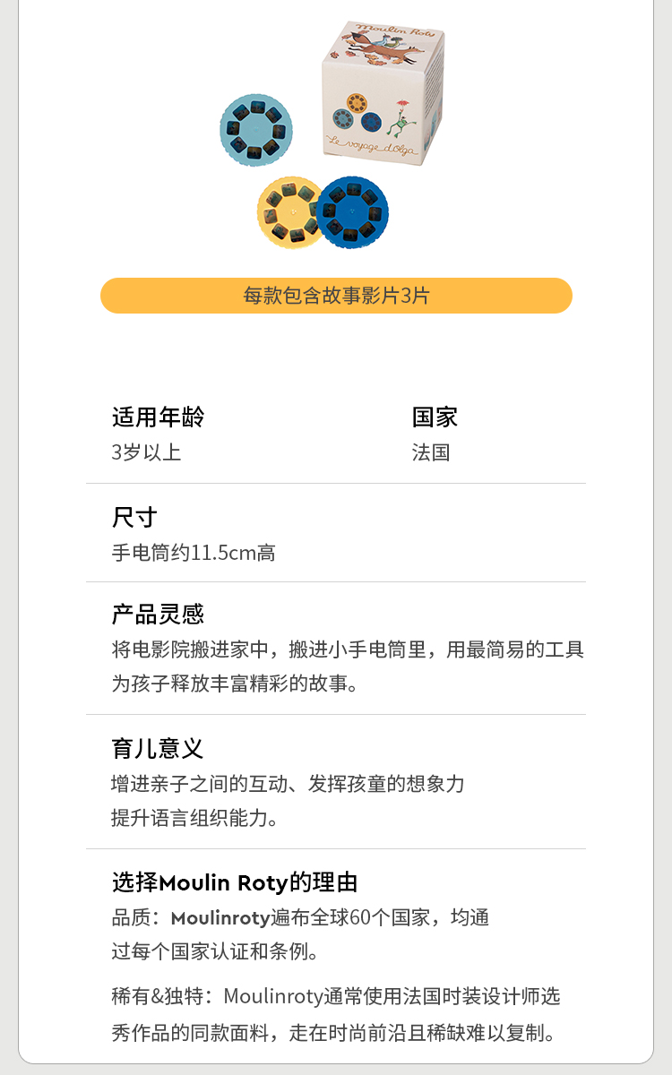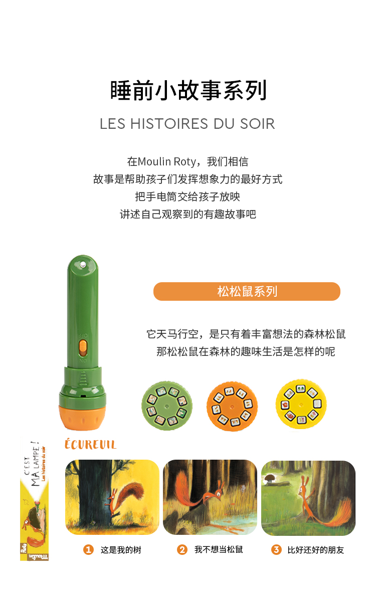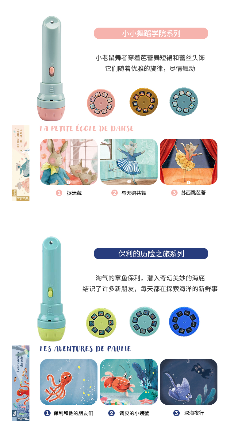 Moulin Roty 《小小舞蹈学院》故事 投影手电筒 适合4岁以上 亲子互动 激发想象力 提升语言组织能力 法国品牌-667362