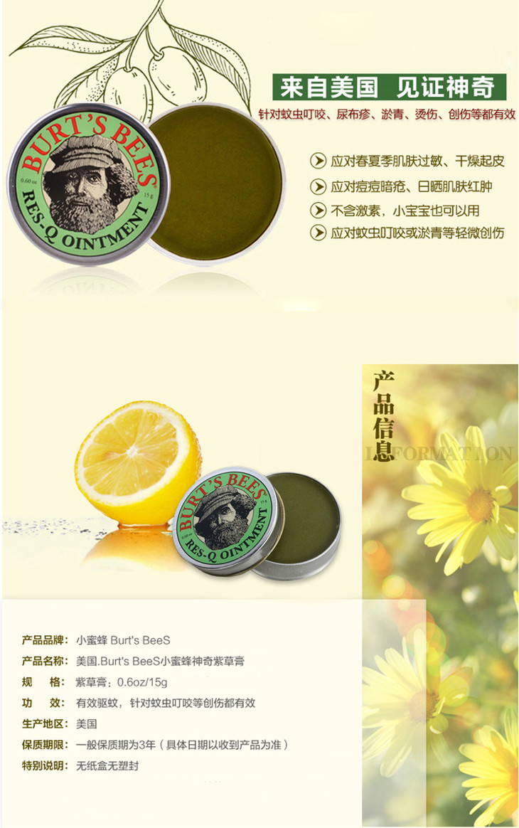 【保税仓】美国小蜜蜂Burt;s Bees 婴幼儿防蚊驱蚊 紫草膏