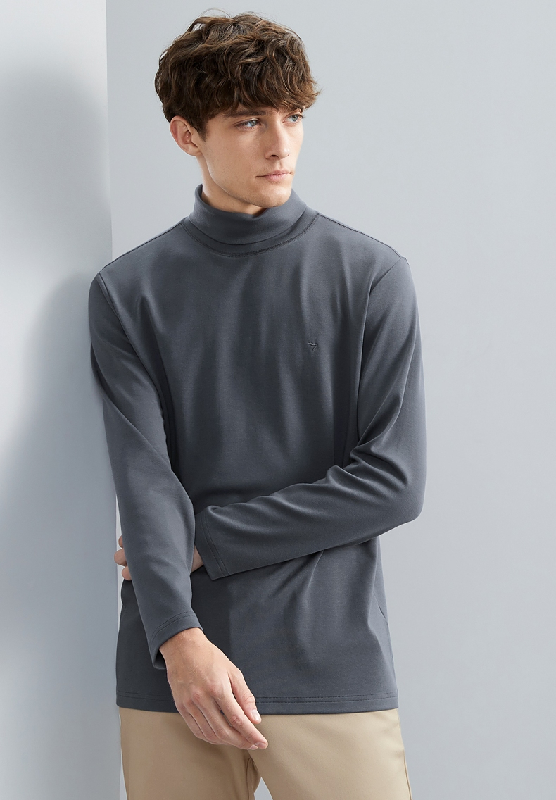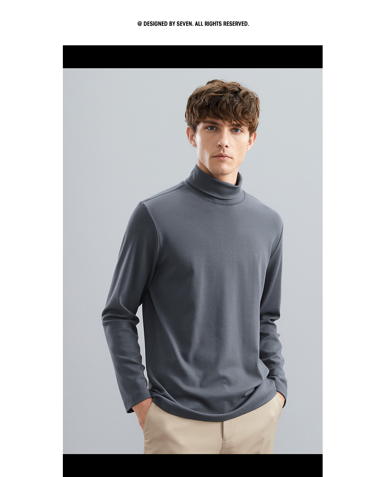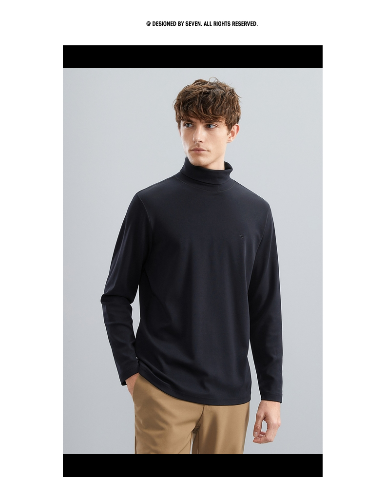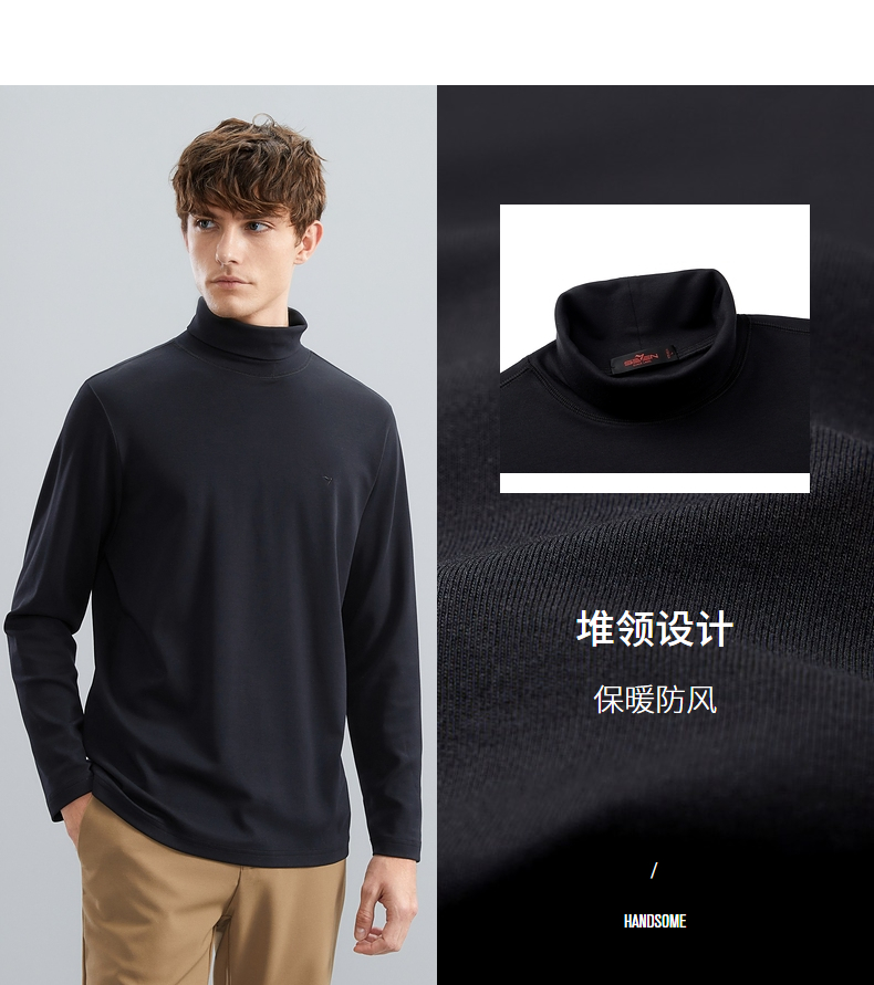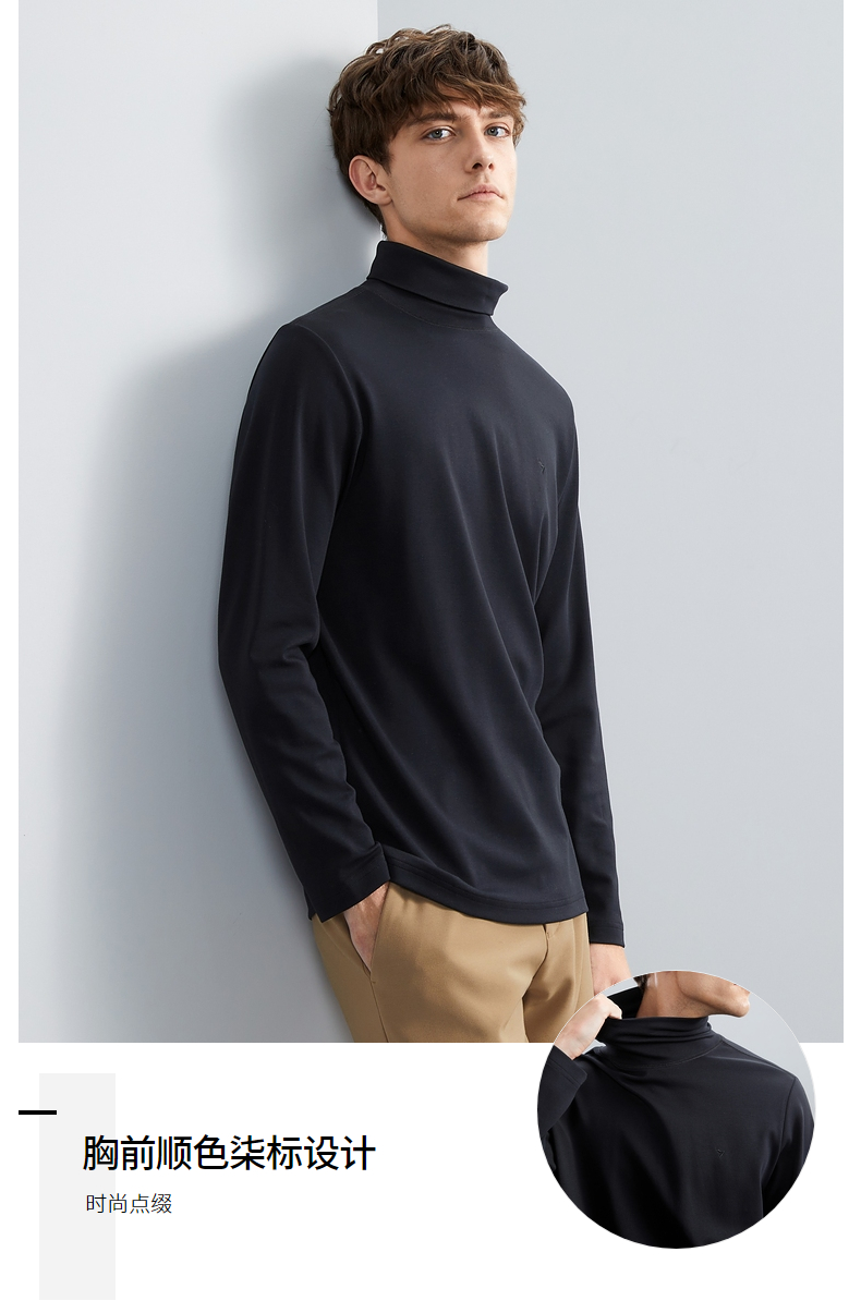 【莫代尔】柒牌男装长袖T恤男秋冬新款抗菌保暖高领打底上衣 125T70440