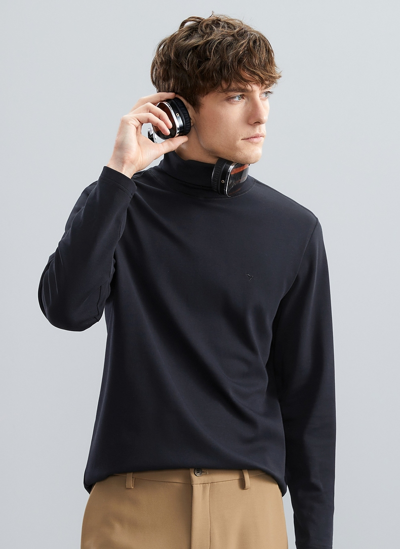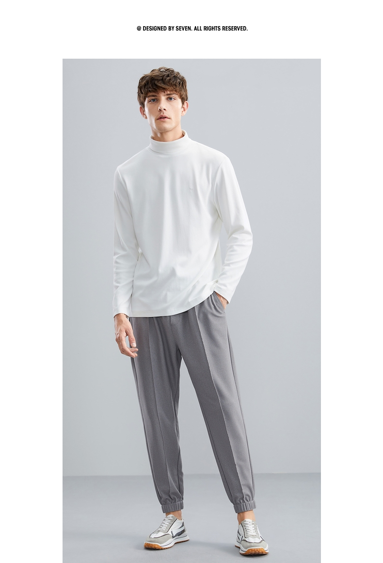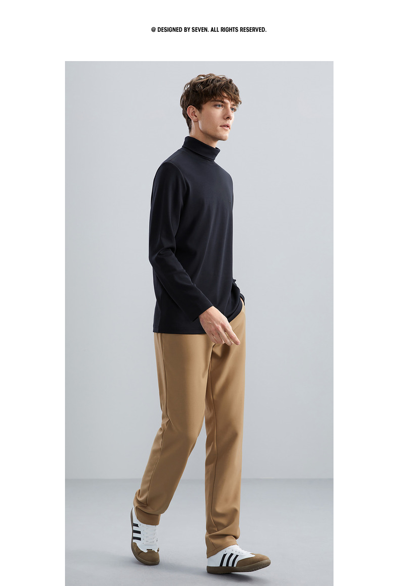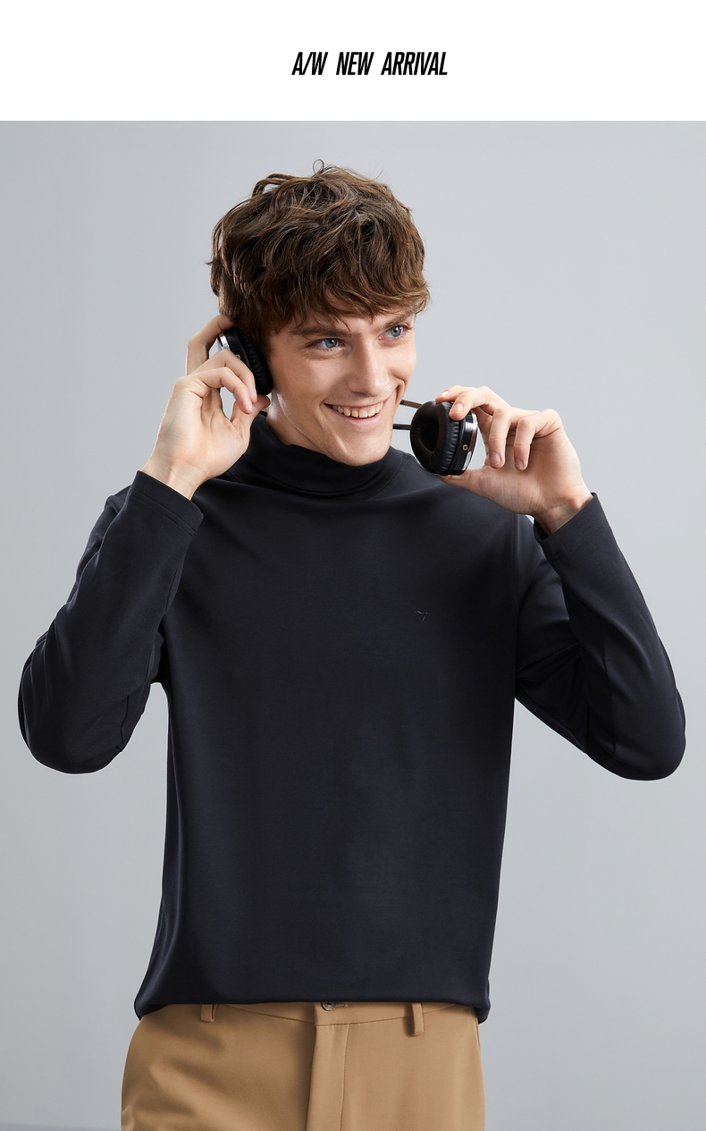 【莫代尔】柒牌男装长袖T恤男秋冬新款抗菌保暖高领打底上衣 125T70440