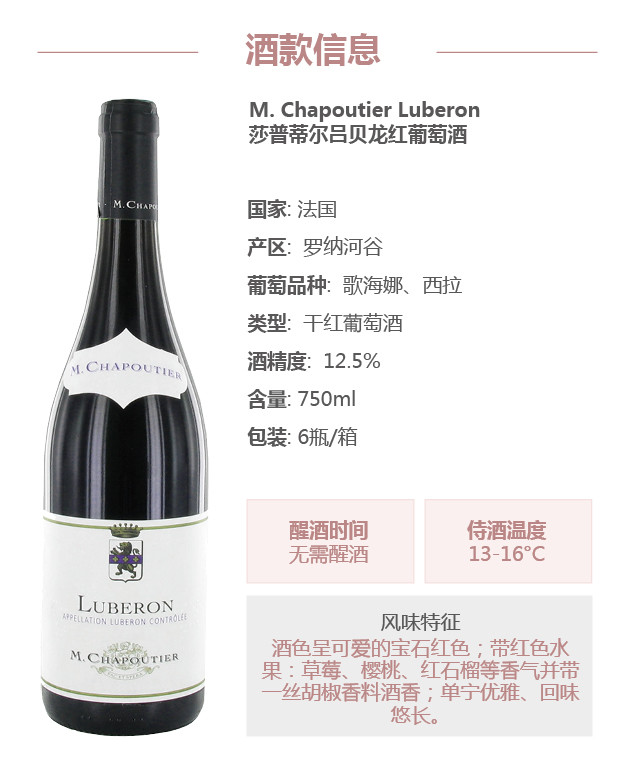 莎普蒂尔吕贝龙红葡萄酒 M. Chapoutier Luberon 750ml