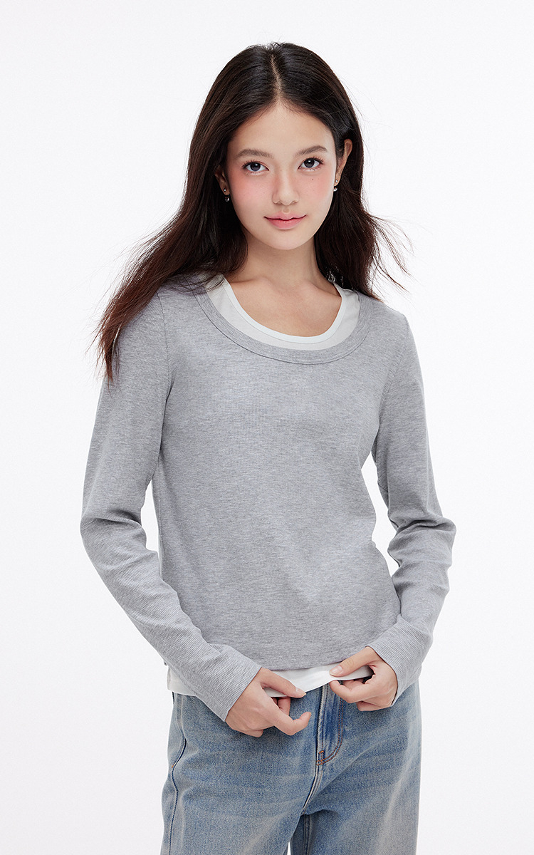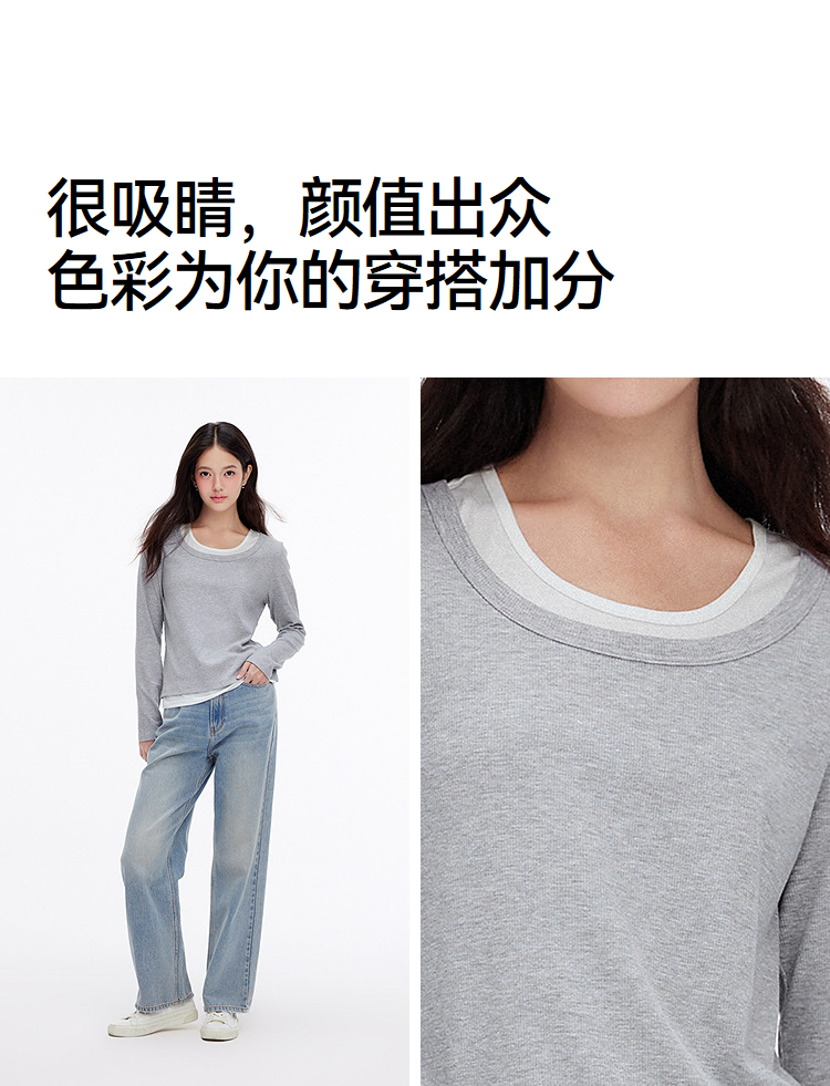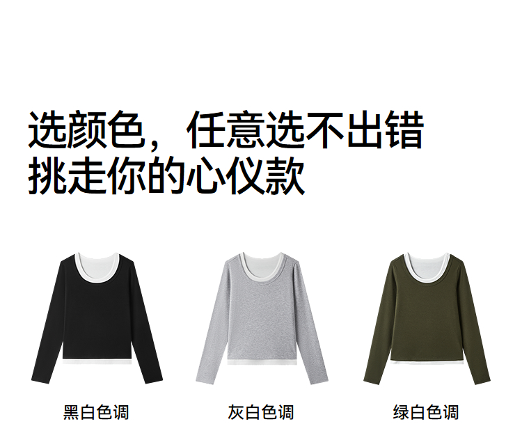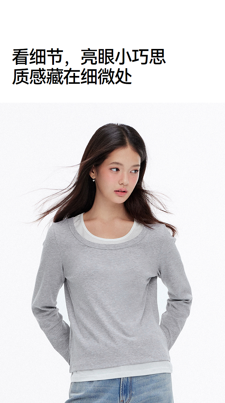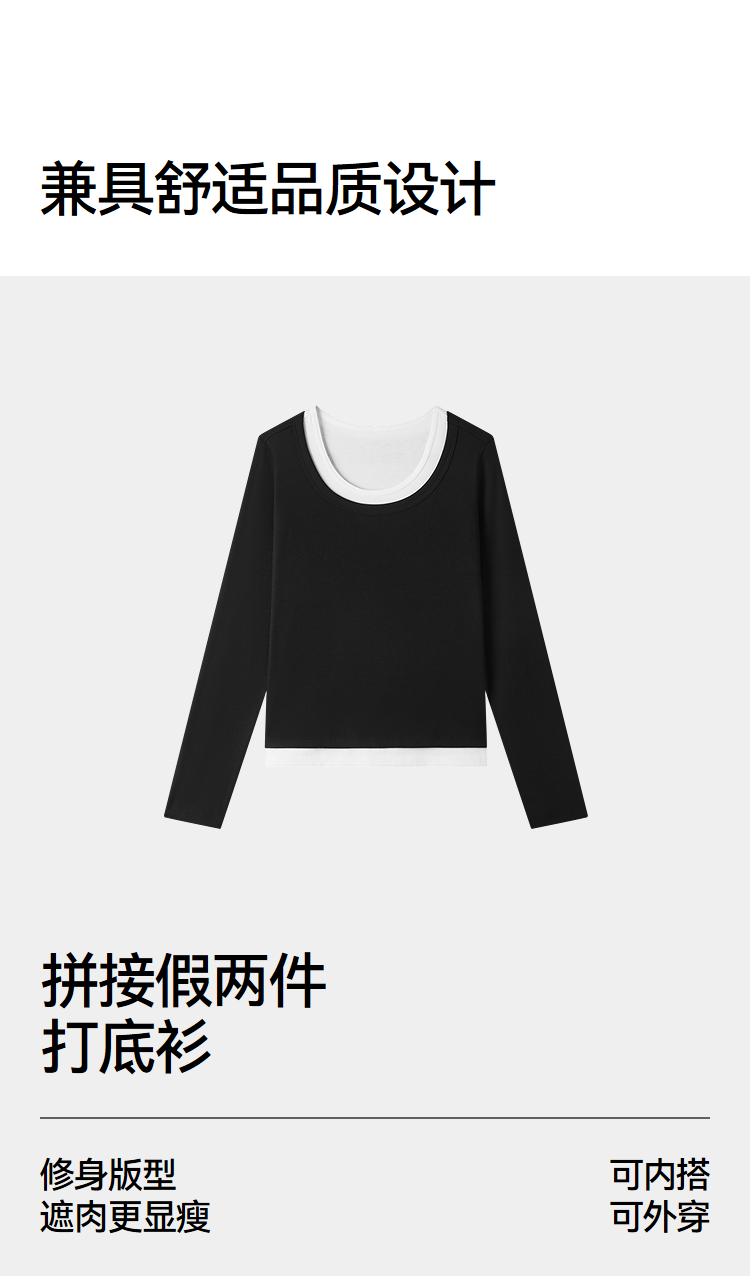 森马打底衫女修身显瘦内搭可外穿拼接假两件上衣长袖秋装时尚百搭