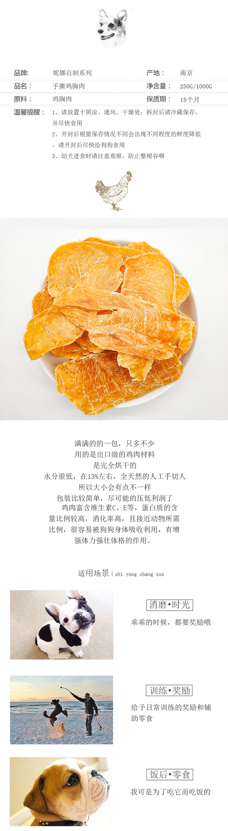 妮娜厨房手工系列 纯手工鸡肉干 薄切鸡胸肉 猫狗通用