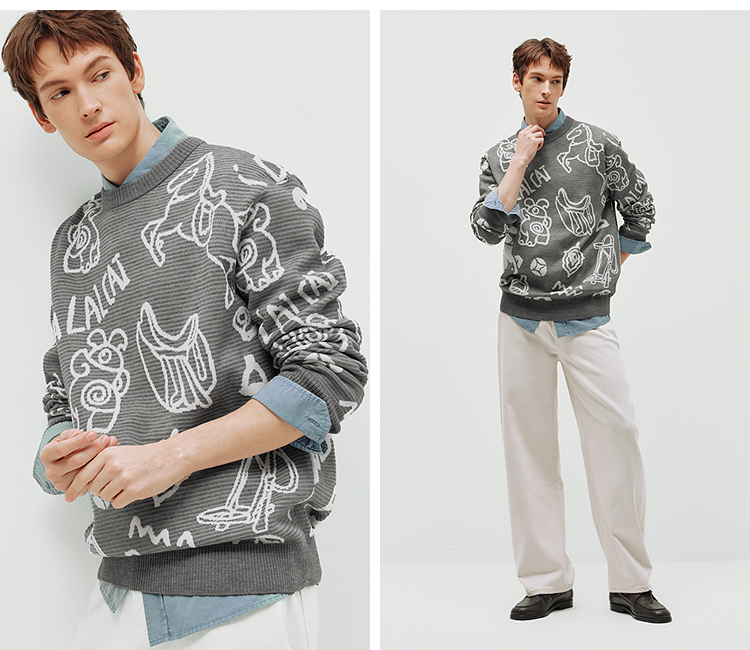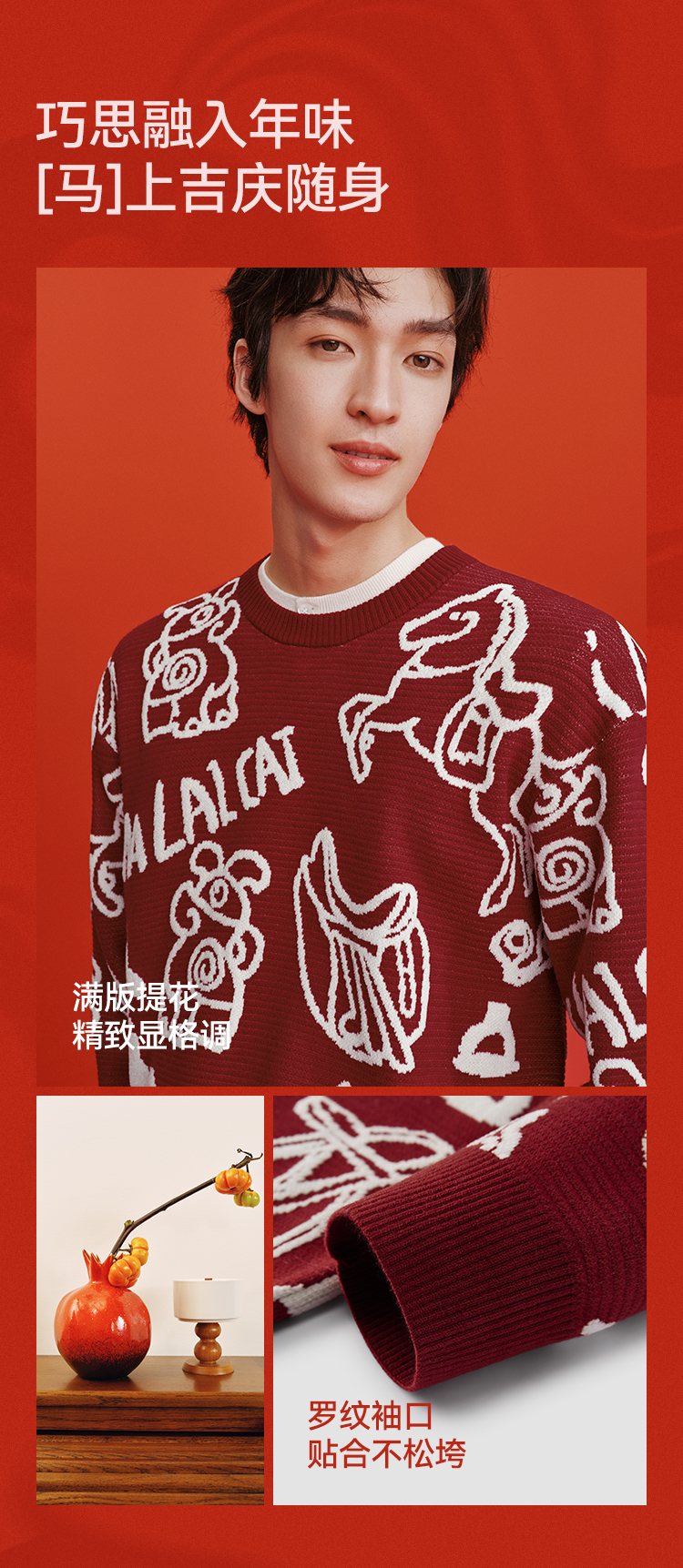 森柔|商场同款森马国博衍艺联名系列毛衫男春季提花毛衣2026新款