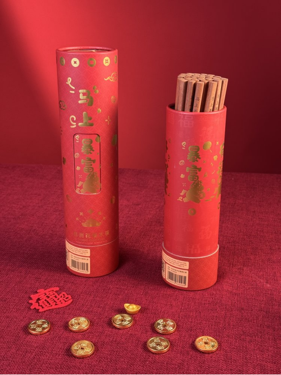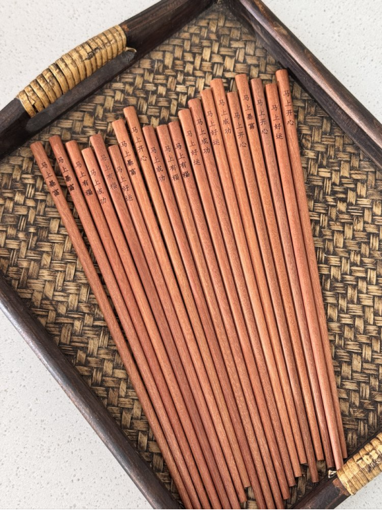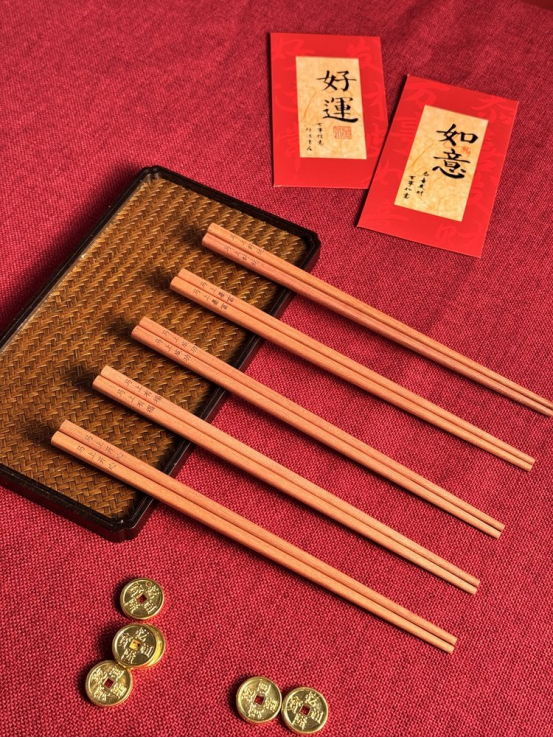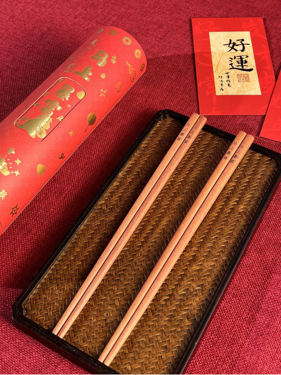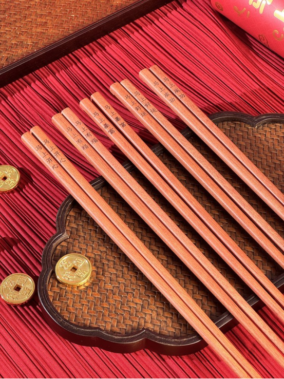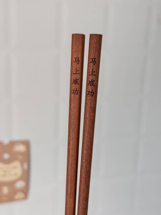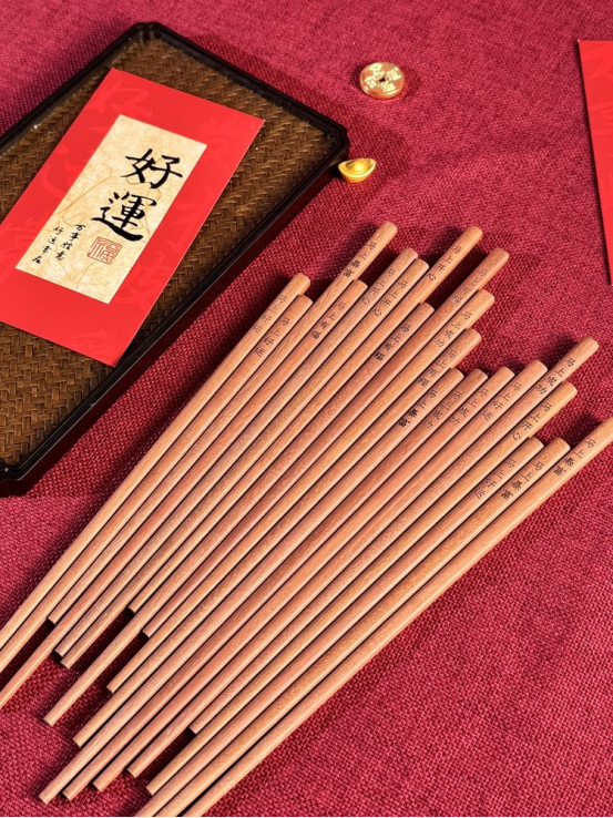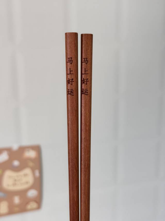 与包装对应的,筷子也设计了5种不同的祝福文字 马上成功,马上暴富,马上有福,马上开心,马上好运 ✨ 仪式感满分:每天吃饭前看一眼,心情都会变好,给平凡的生活注入一点点美好的念想。 ✨ 送礼佳品:送给闺蜜、家人、同事、合作伙伴都超合适!寓意好又实用,比单纯发红包有心意多了。 ✨ 精致工艺:手感温润,雕刻清晰有质感,不是廉价货,每次使用都是一种享受。