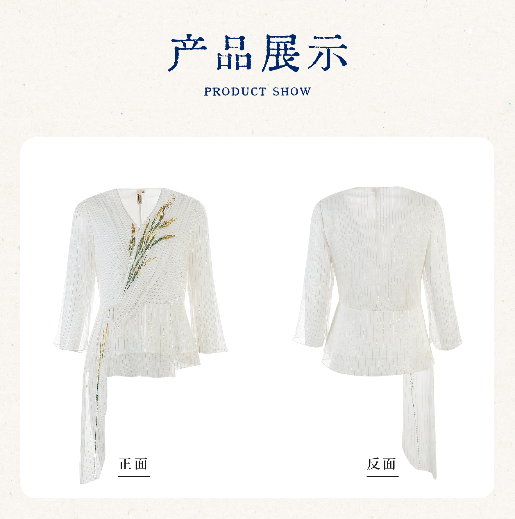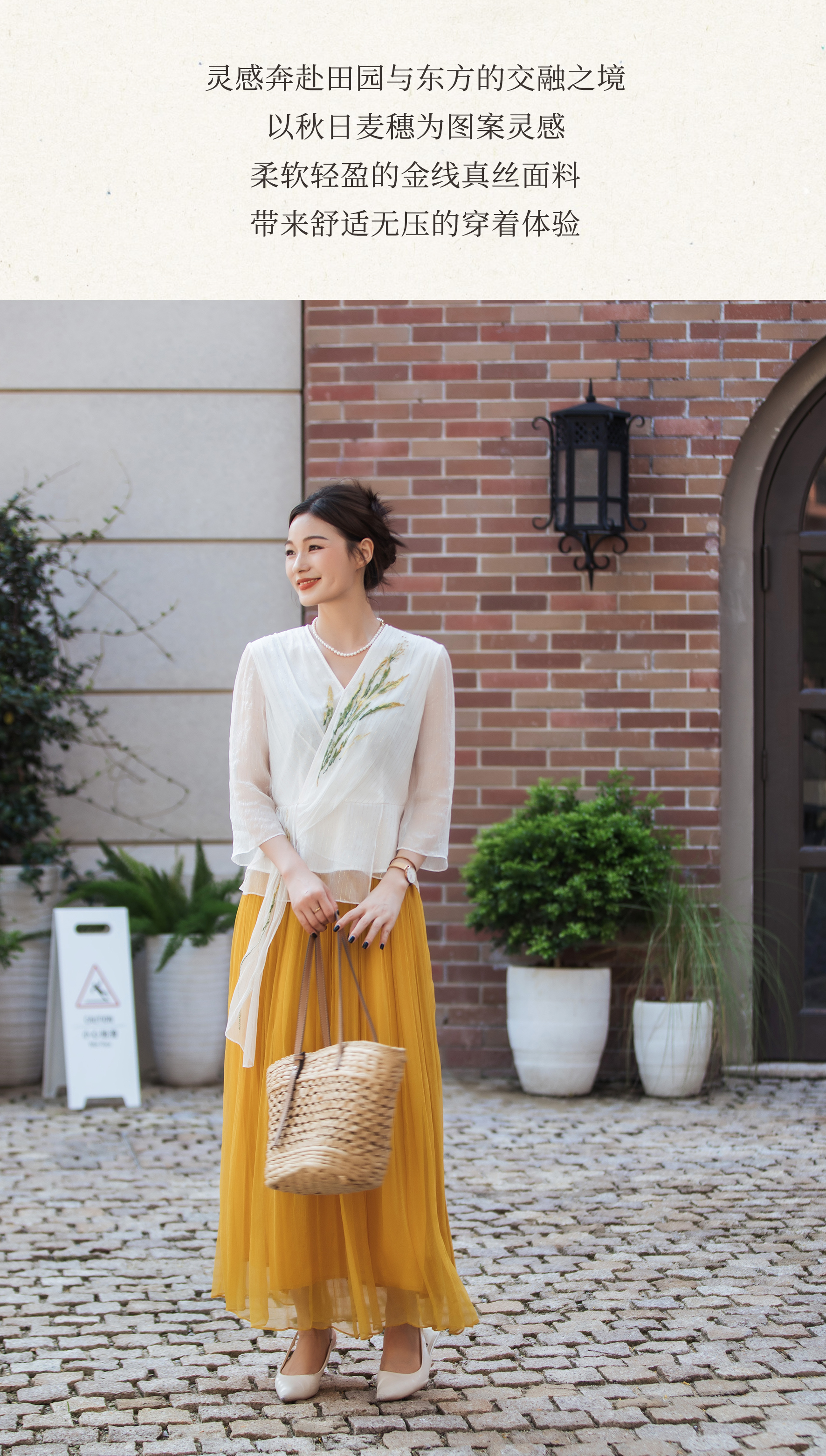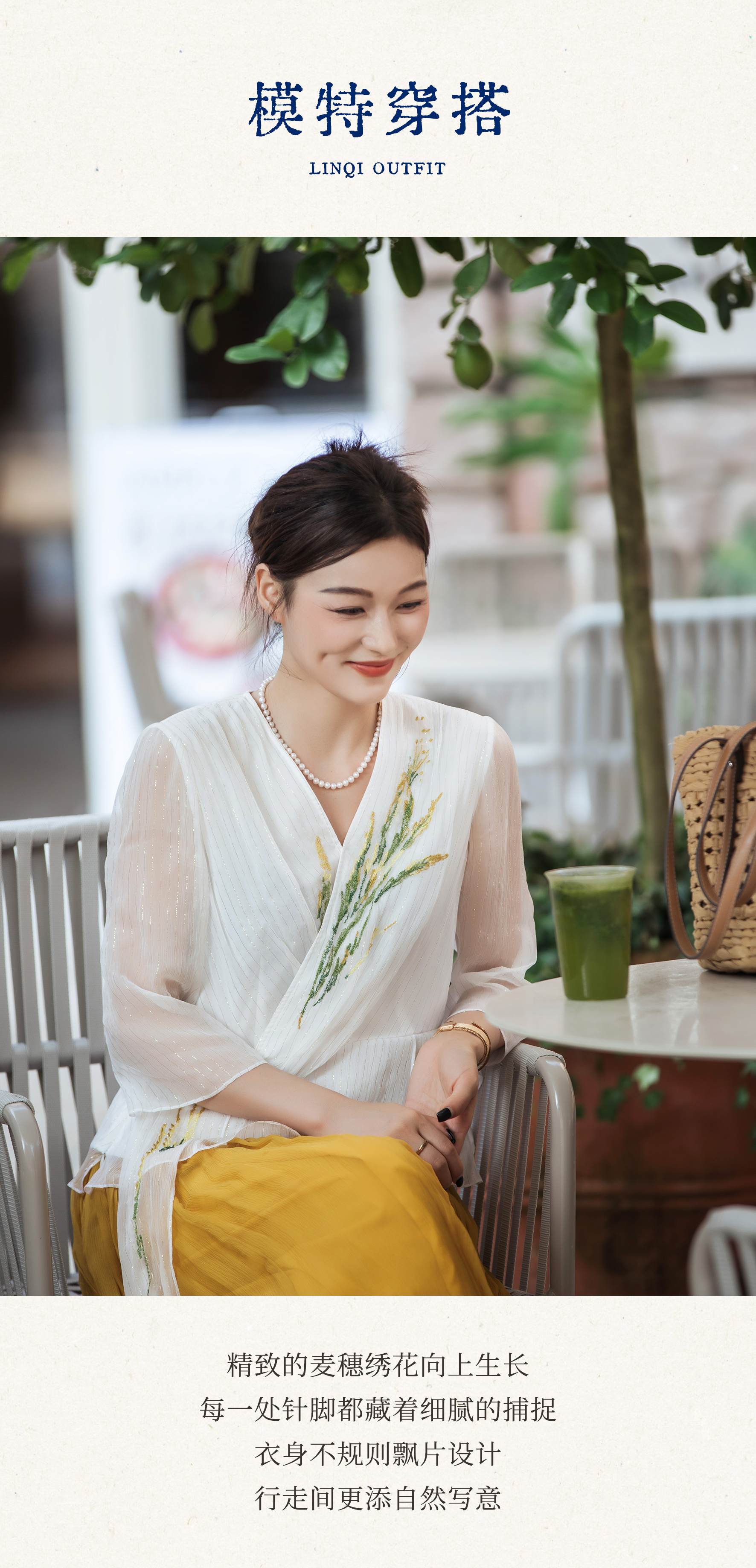 【林栖设计小店】(现货)【林栖推荐】麦穗金线真丝汉服交襟女早秋衬衣上衣 N1953305