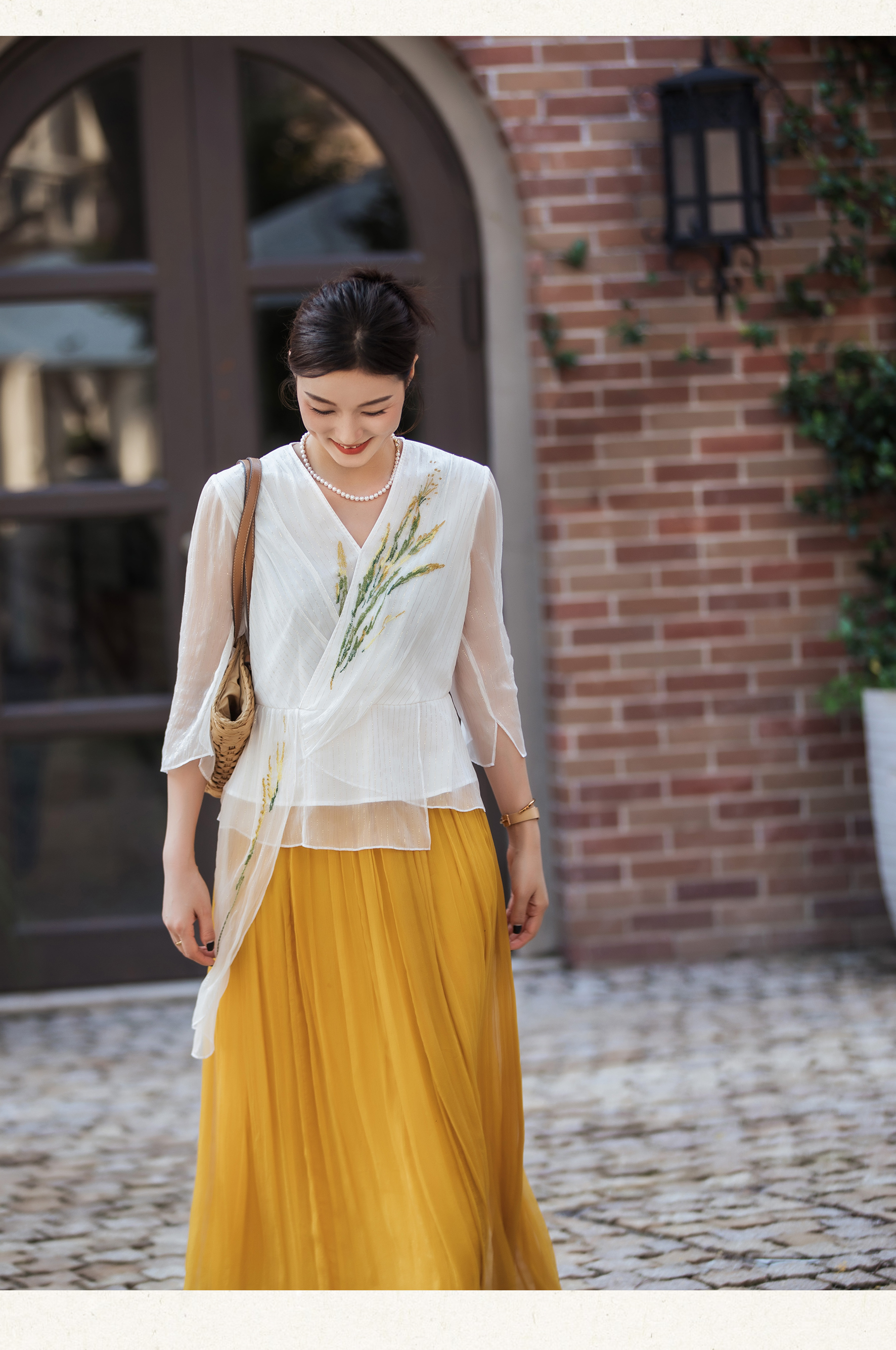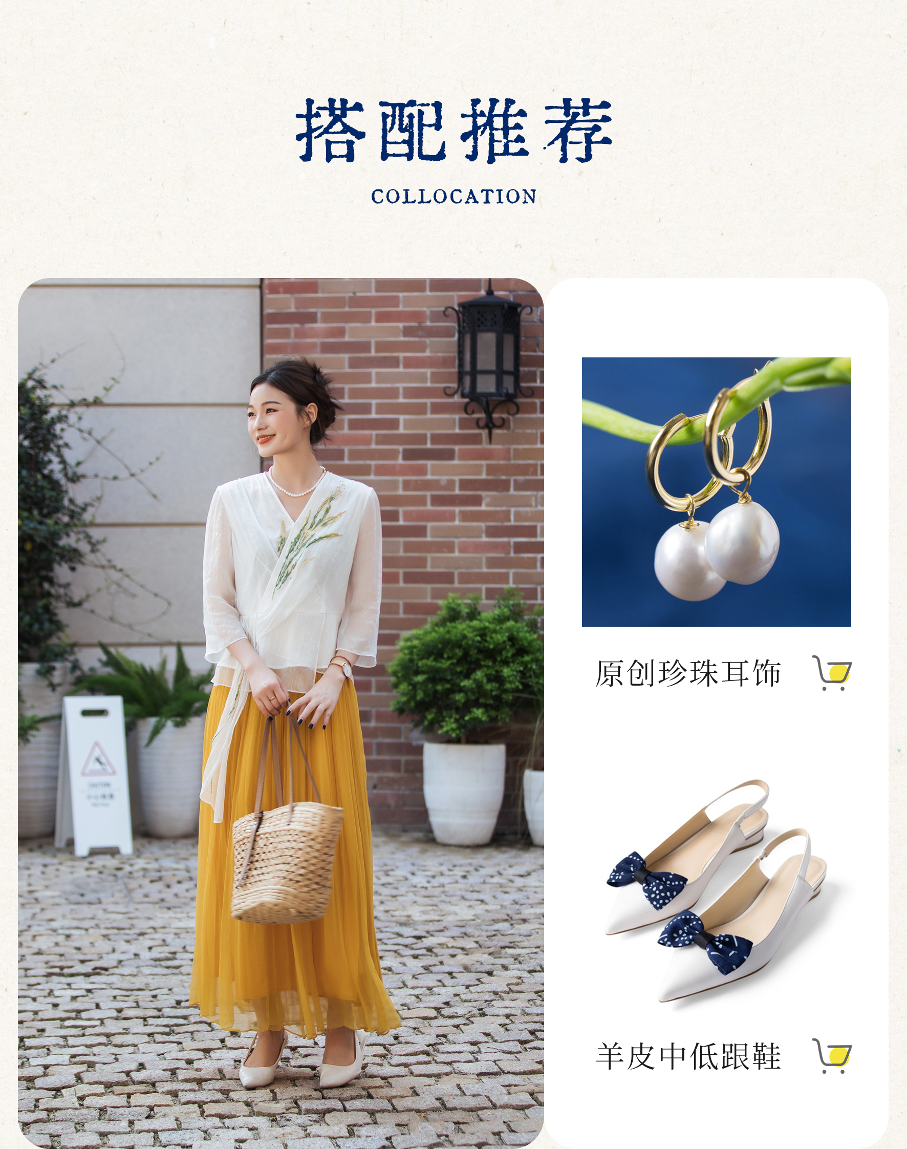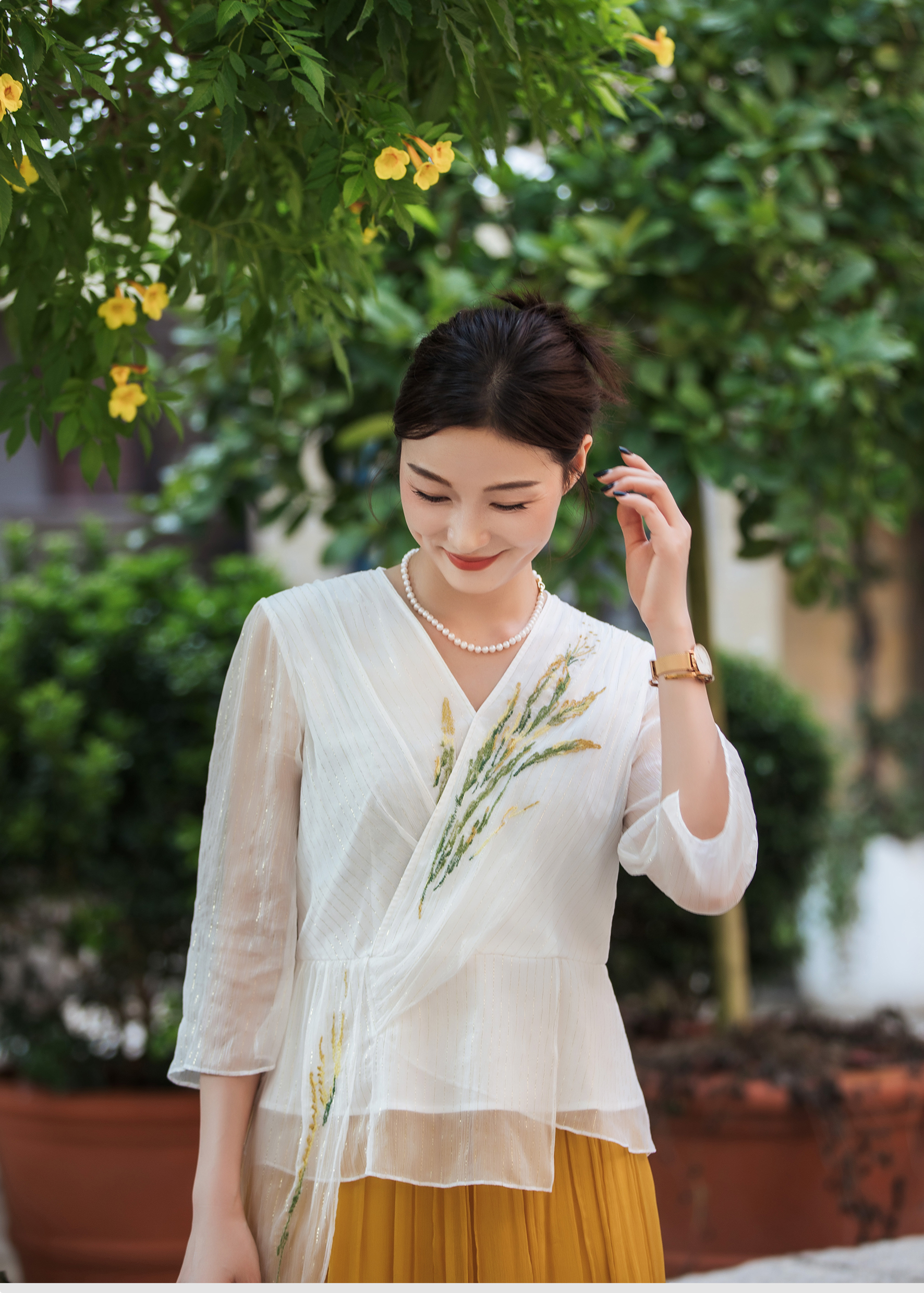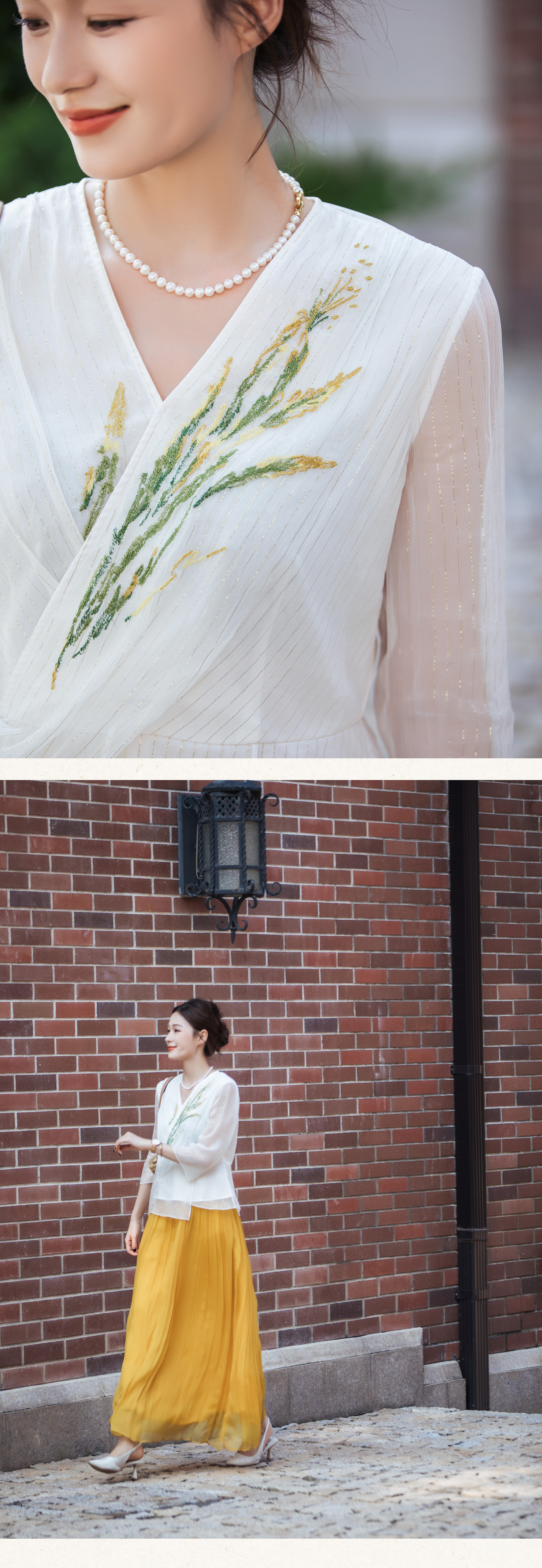 【林栖设计小店】(现货)【林栖推荐】麦穗金线真丝汉服交襟女早秋衬衣上衣 N1953305