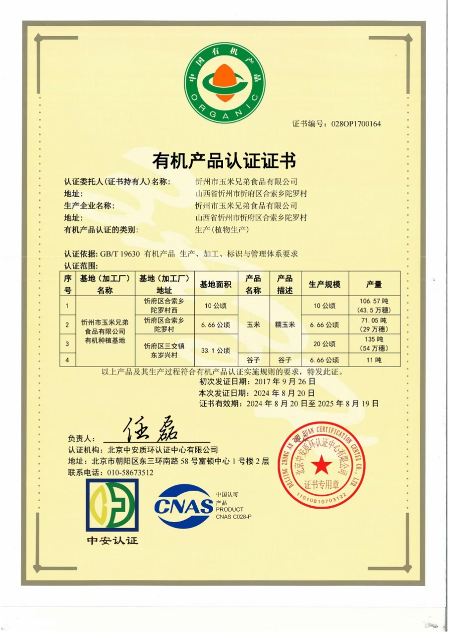 【产品名称】:玉米兄弟有机种植小米