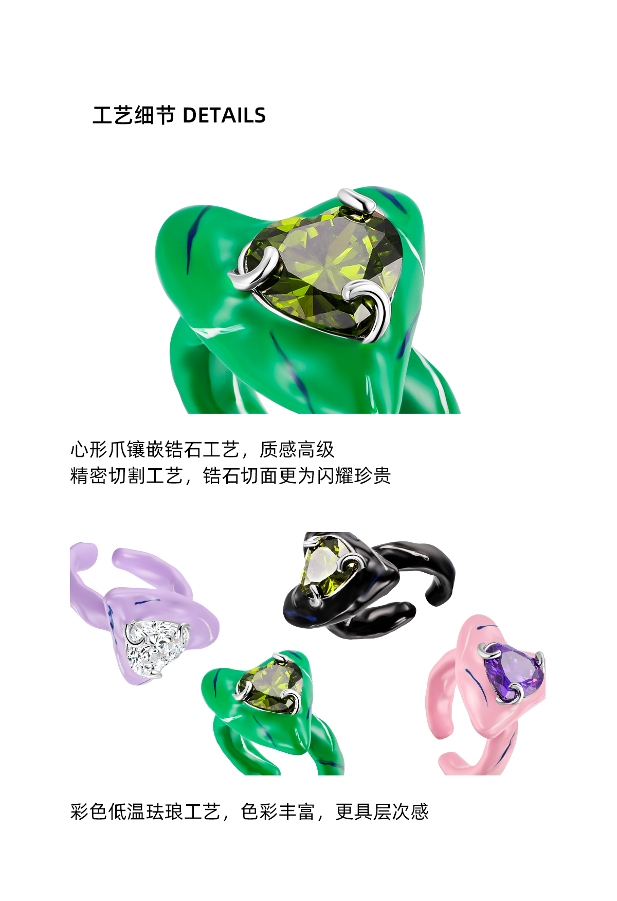 2、细节展示:材质、工艺、做工等;