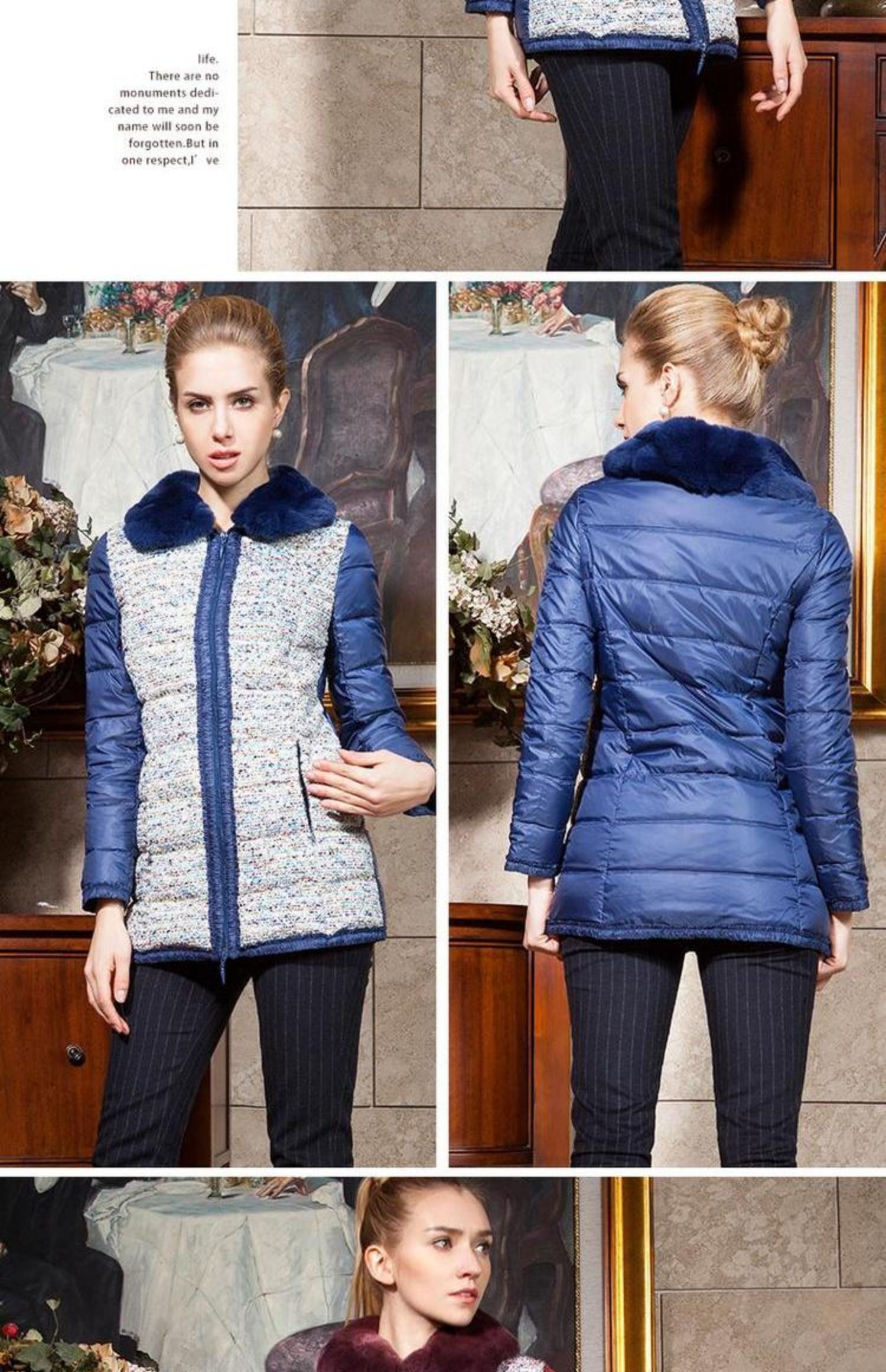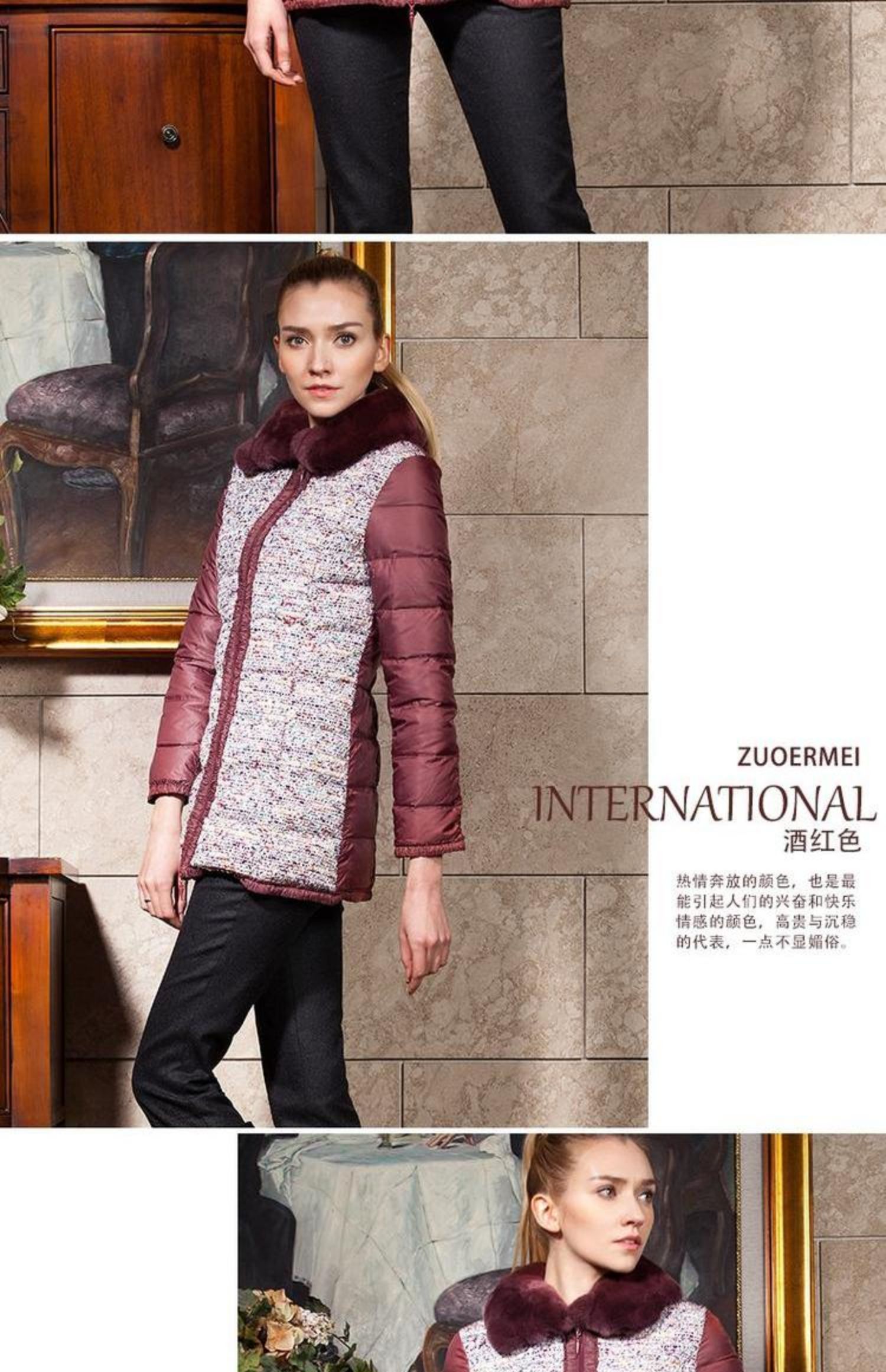 佐尔美冬款女士羽绒服中长款毛领修身女羽绒衣修身E44YT13
