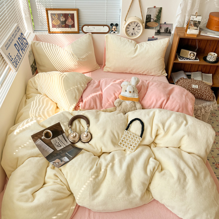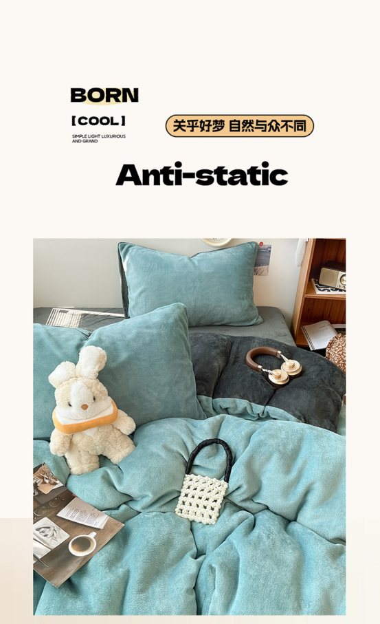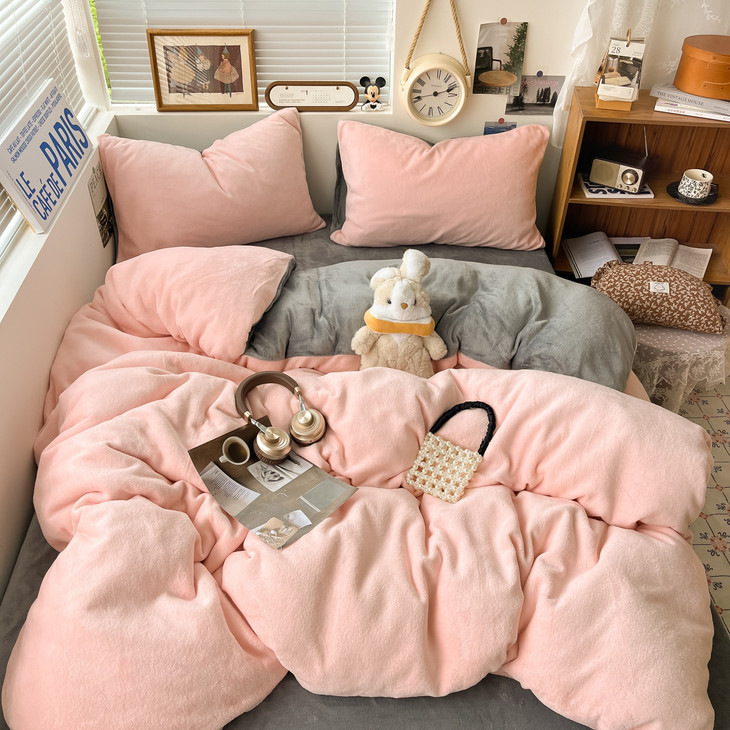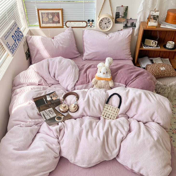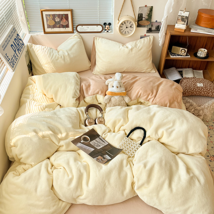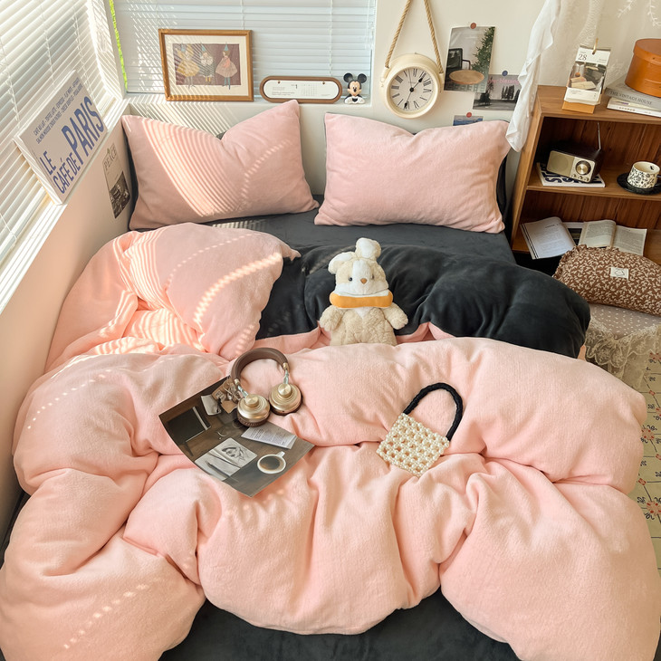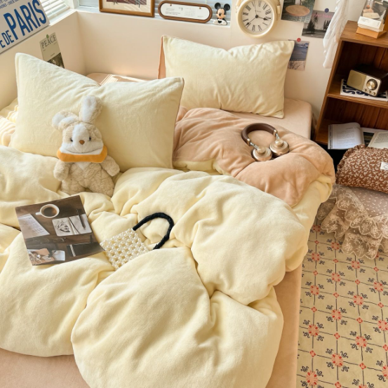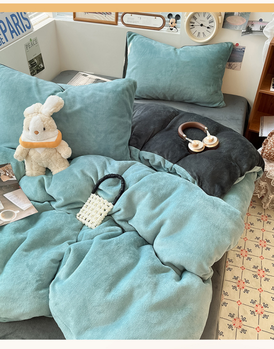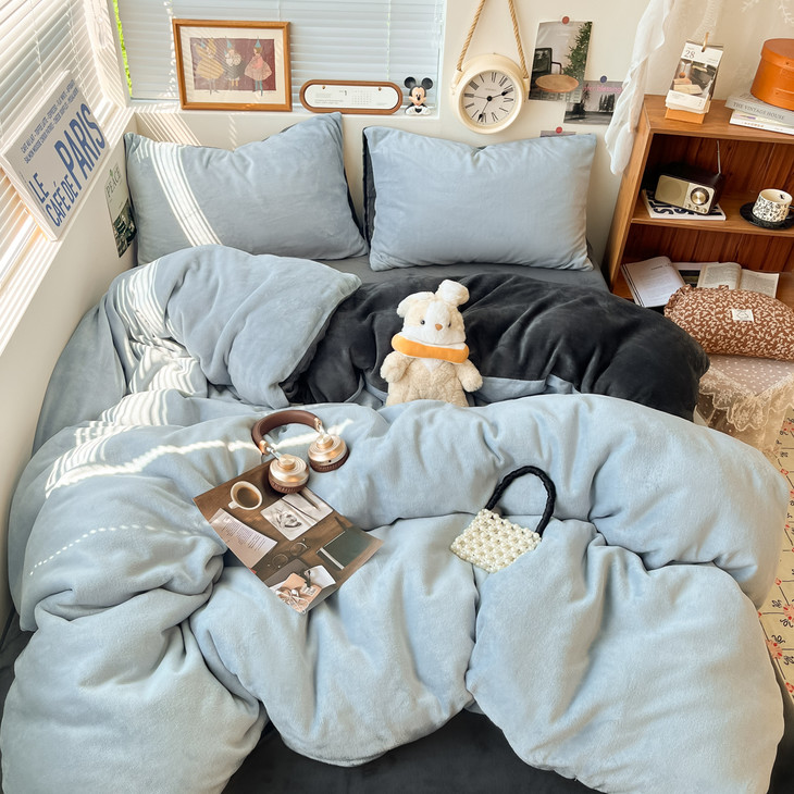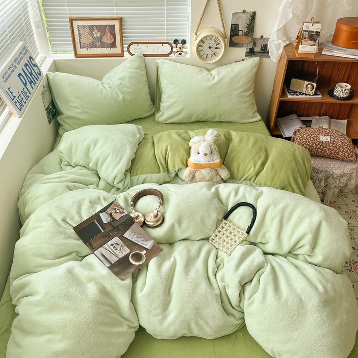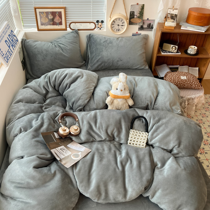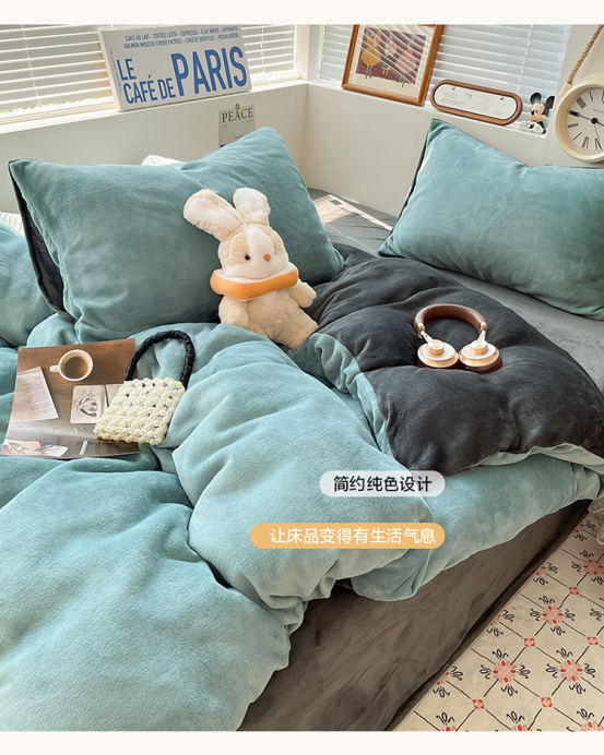 冬季纯色简约牛奶绒四件套