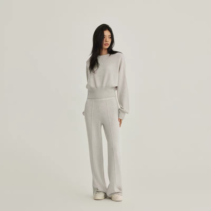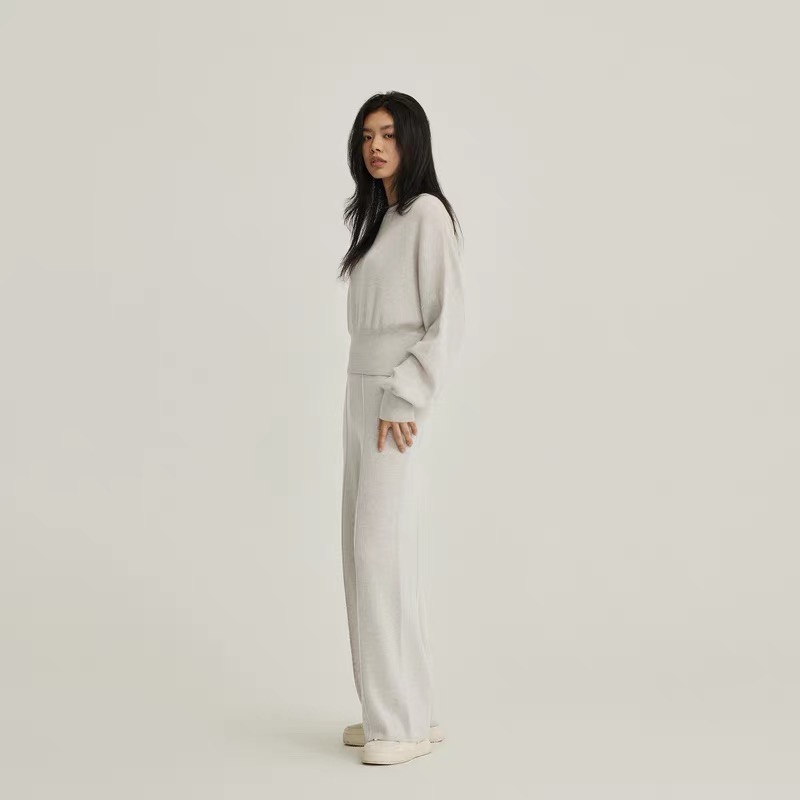 1F【RESIMPLE】简单点 基础款宽松羊毛针织衫女 圆领收口上衣女款