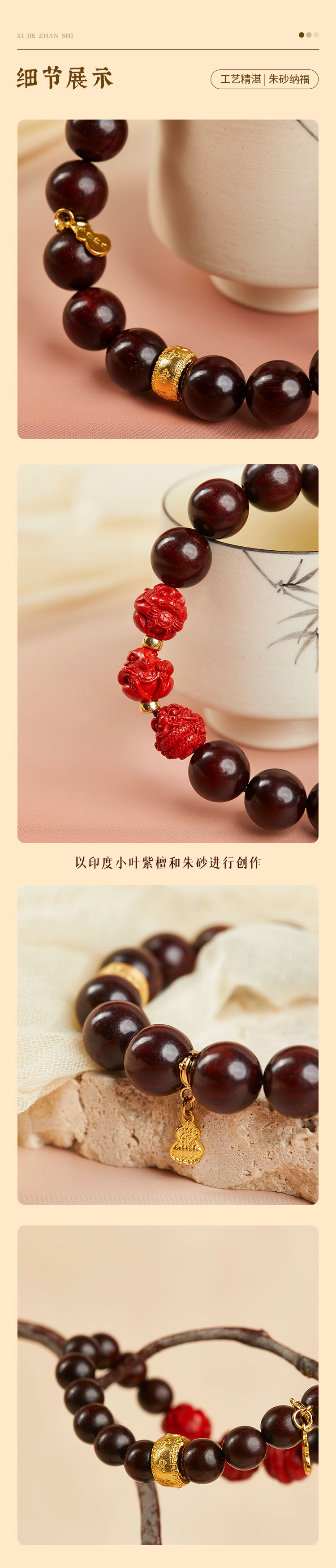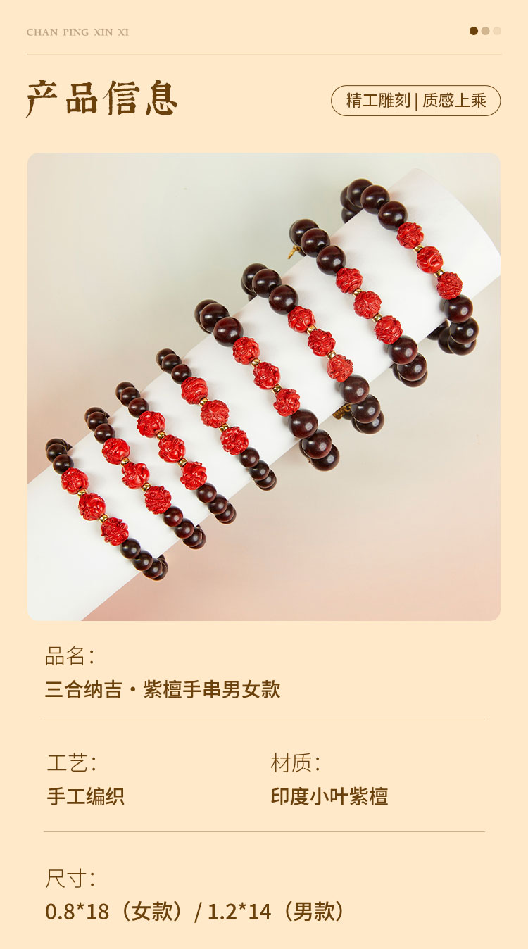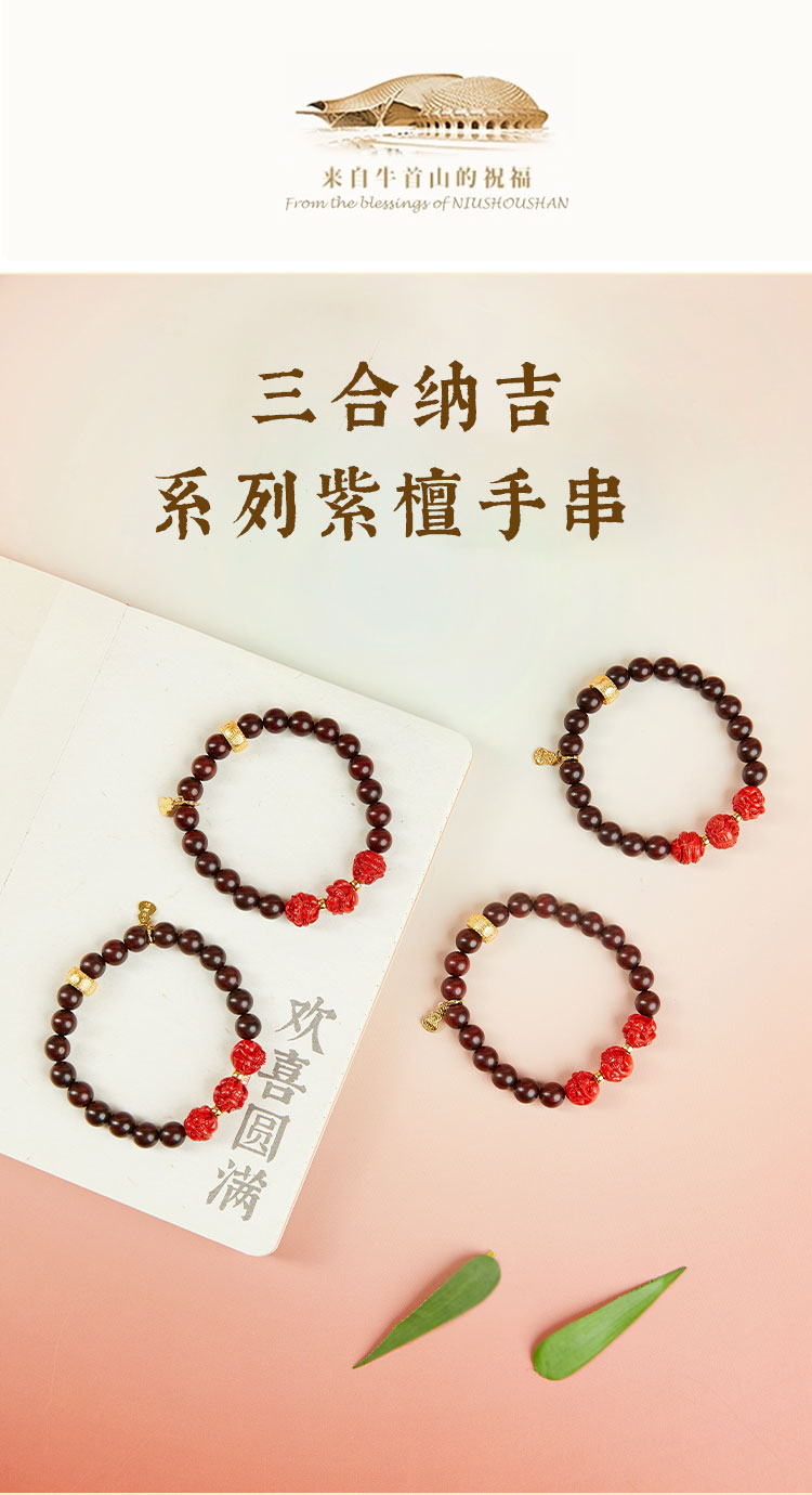 牛首山文创三合纳吉系列紫檀手串男女款手串情侣礼物南京纪念品