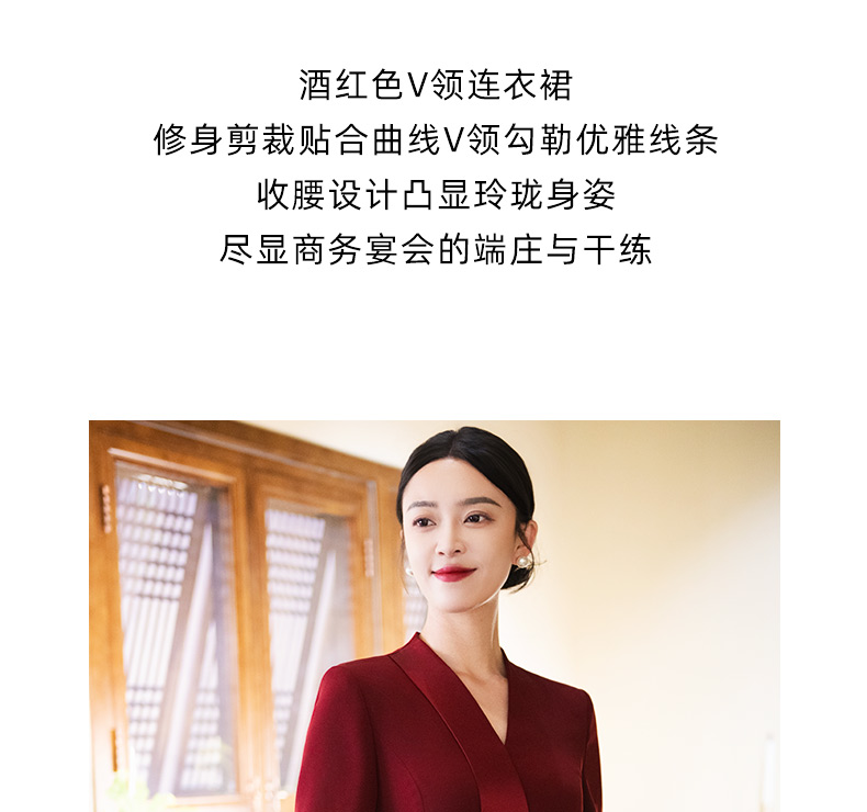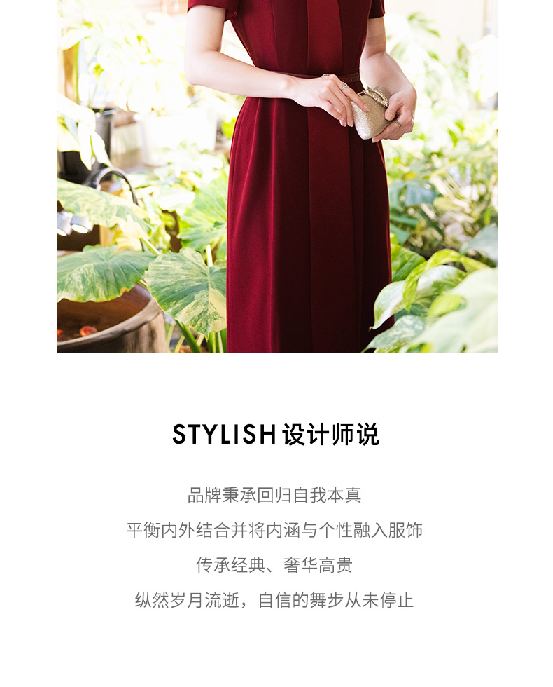 成熟、稳重、高贵典雅、大方得体 融合东方文化的含蓄和法国的浪漫 将创意的艺术性与消费需求相结合 为自信女性塑造高品质场合服装