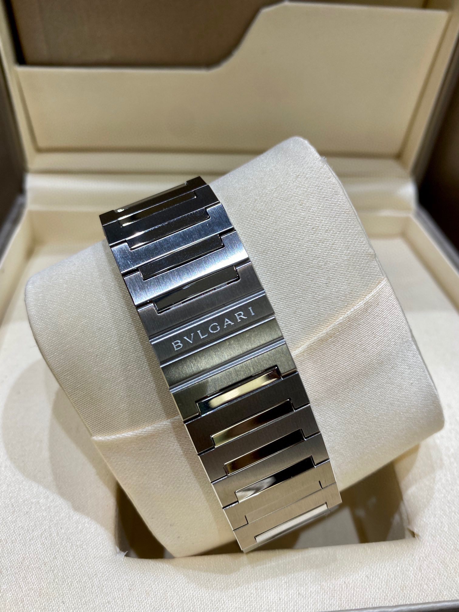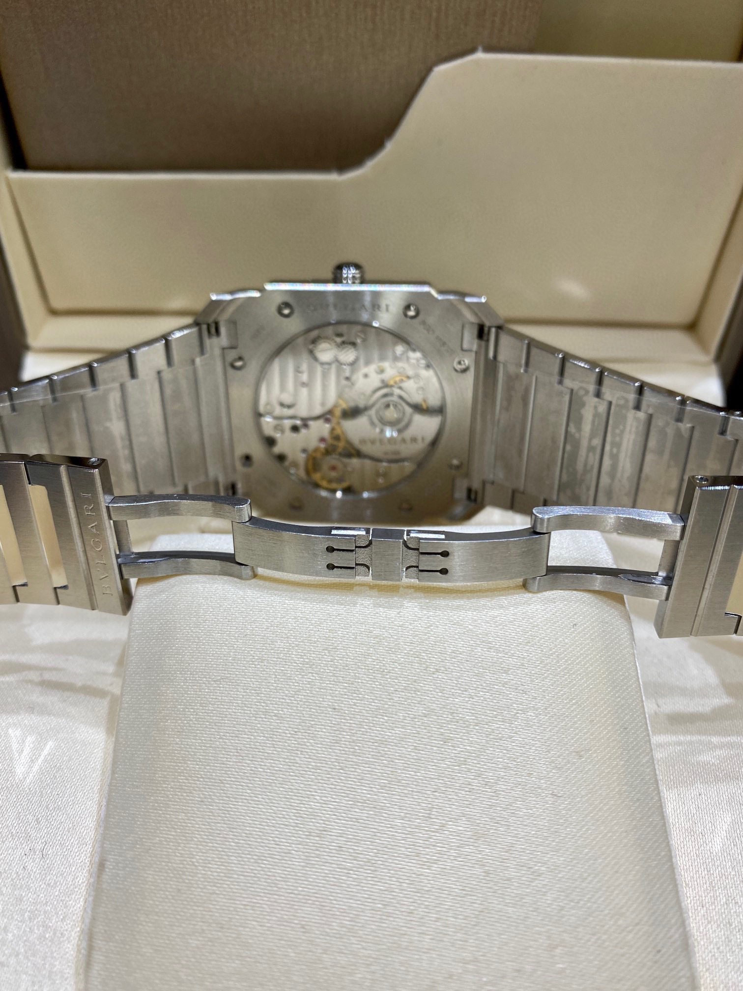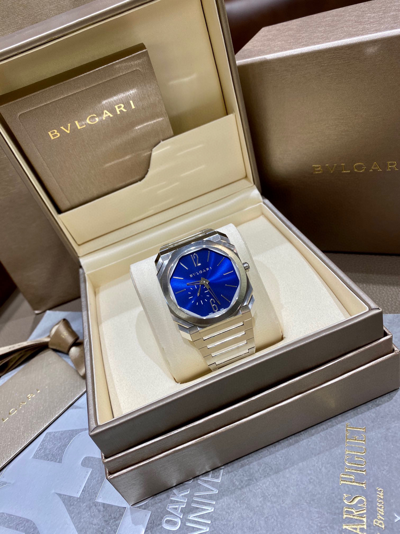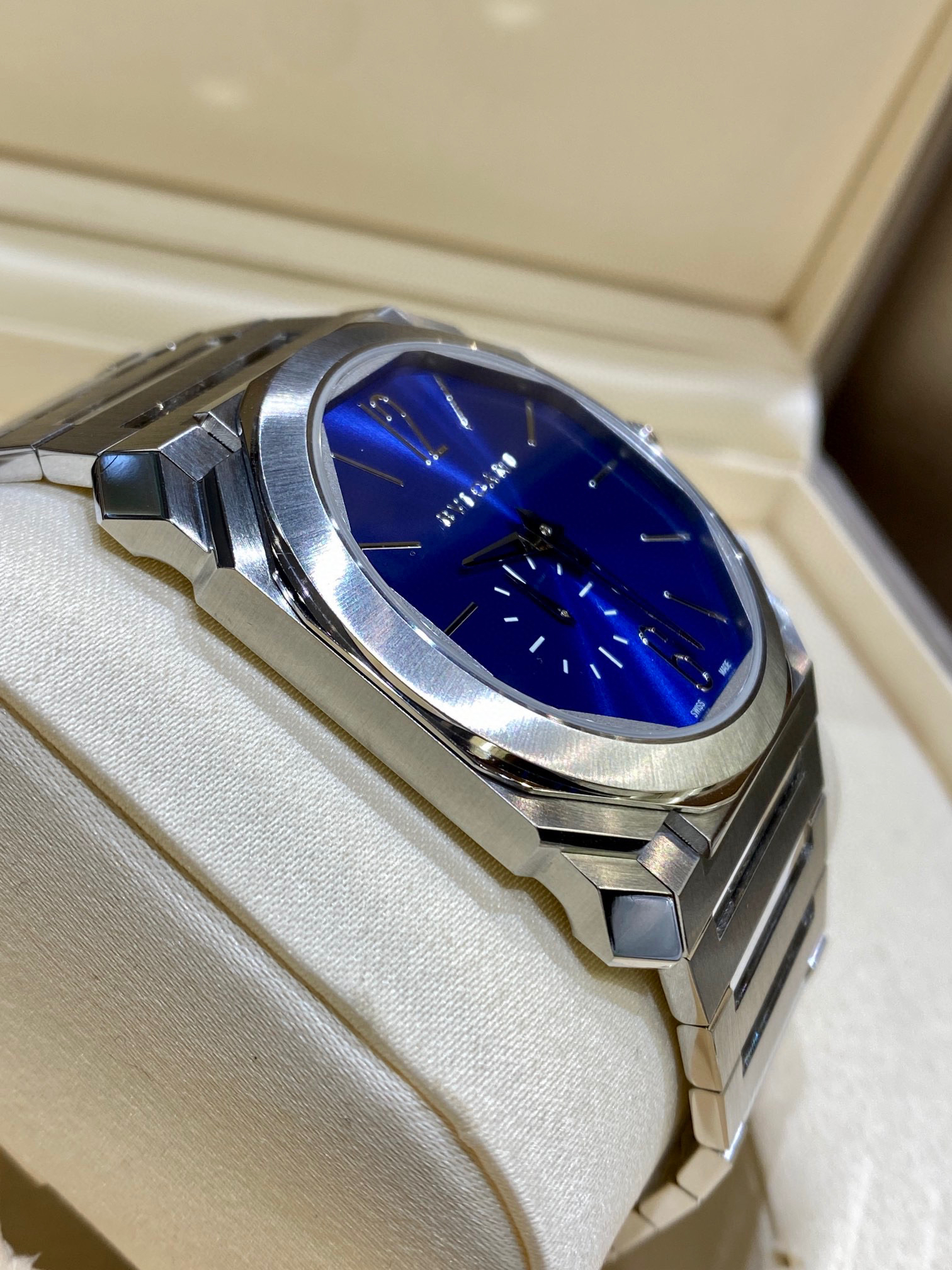 宝格丽Octo Finissimo是OCTO系列中非常受欢迎的表款,以超薄而闻名。Octo Finissimo的设计灵感来自于罗马的马克森提斯殿,这一标志性的建筑拥有宽大的方形底座,由拱形柱分开,Octo Finissimo正是受其结构所启发,不同于以往的独特造型,在树立超薄腕表行业新标杆的同时,引领行业潮流趋势表盘尺寸:40mm 厚度:7mm