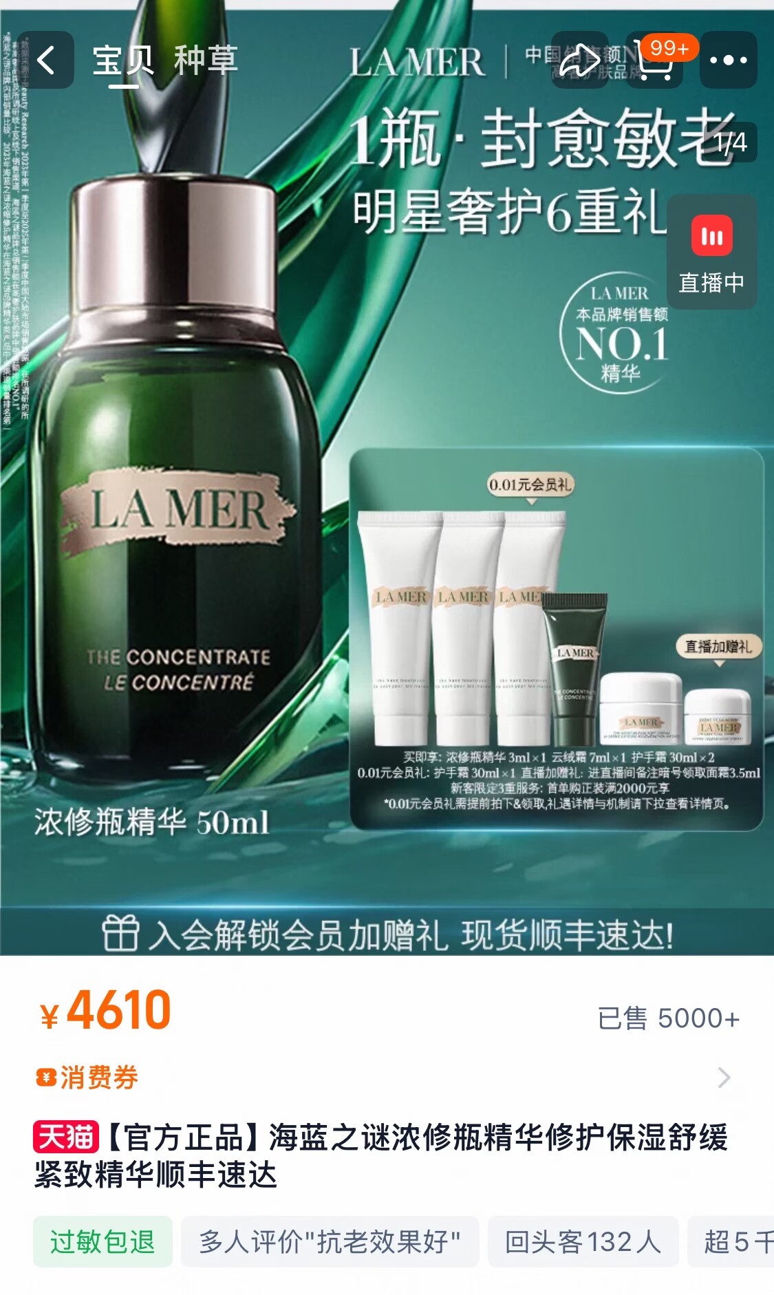 医美项目前后推荐升级加强1:1复刻LA*Mer细胞浓缩修护精华露+细胞浓缩修护蜜舒缓敏感补水保湿双重同源海藻