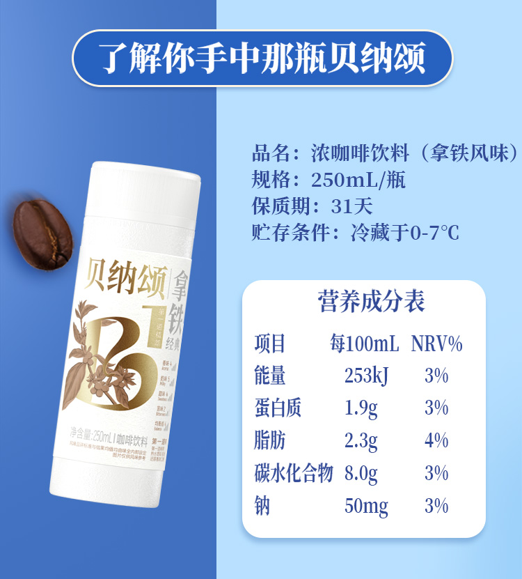 贝纳颂咖啡(拿铁)250ml *1瓶 冷藏瓶装饮品 商品图2