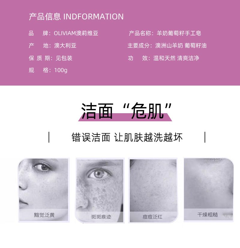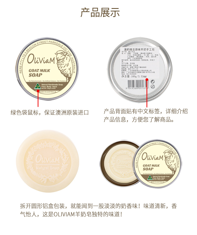 【中欧班列精选2块】澳洲澳莉维亚山羊奶皂 原装进口 Oliviam原味/橄榄味/葡萄籽/芦荟 100g/块 ALWY