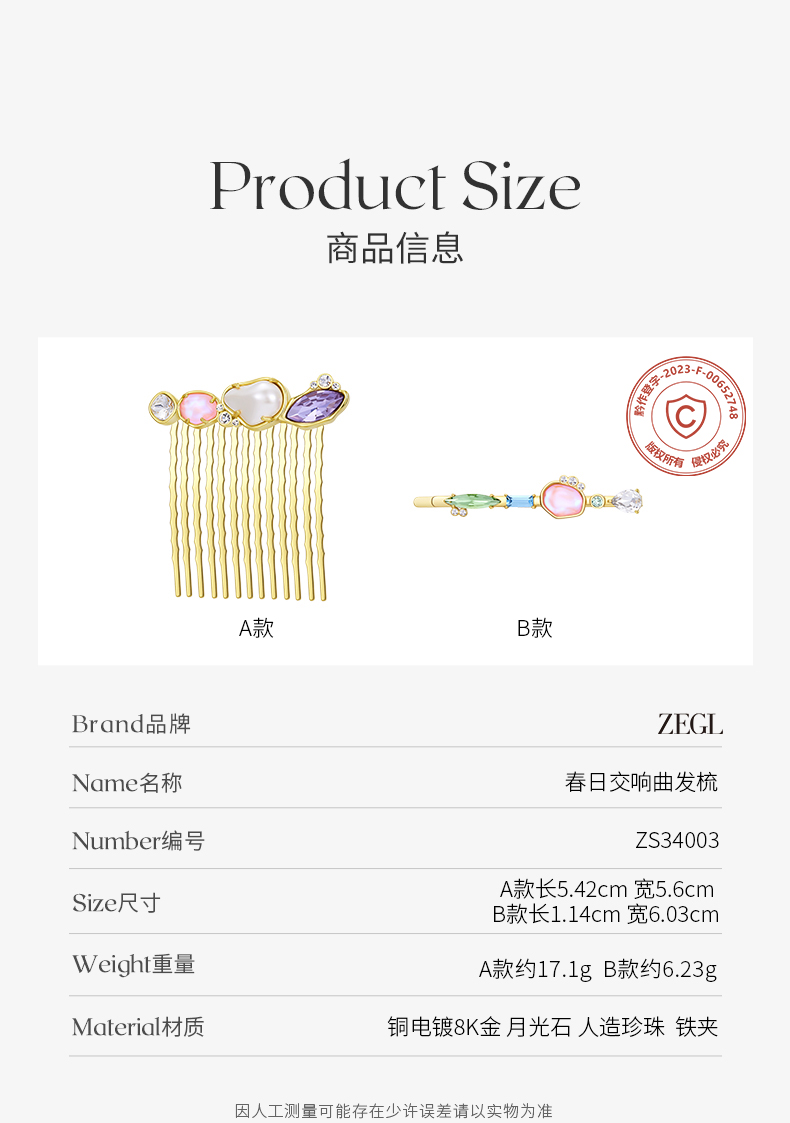 ZEGL设计师早春调色盘系列彩色头饰发夹女一字夹多巴胺夹子发饰品