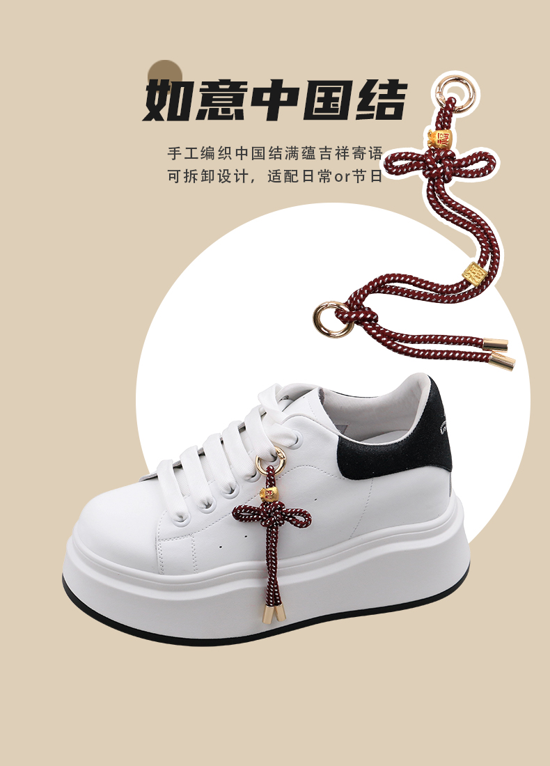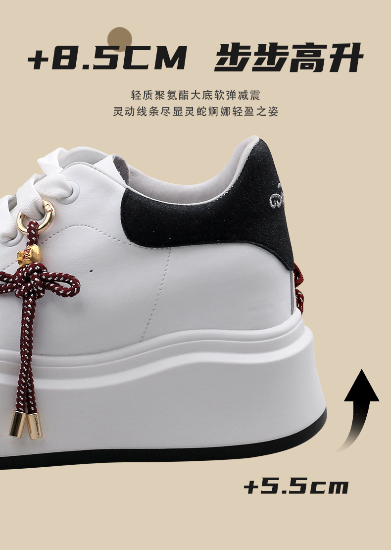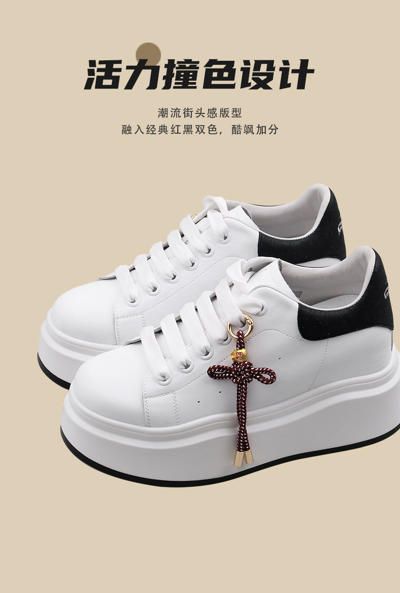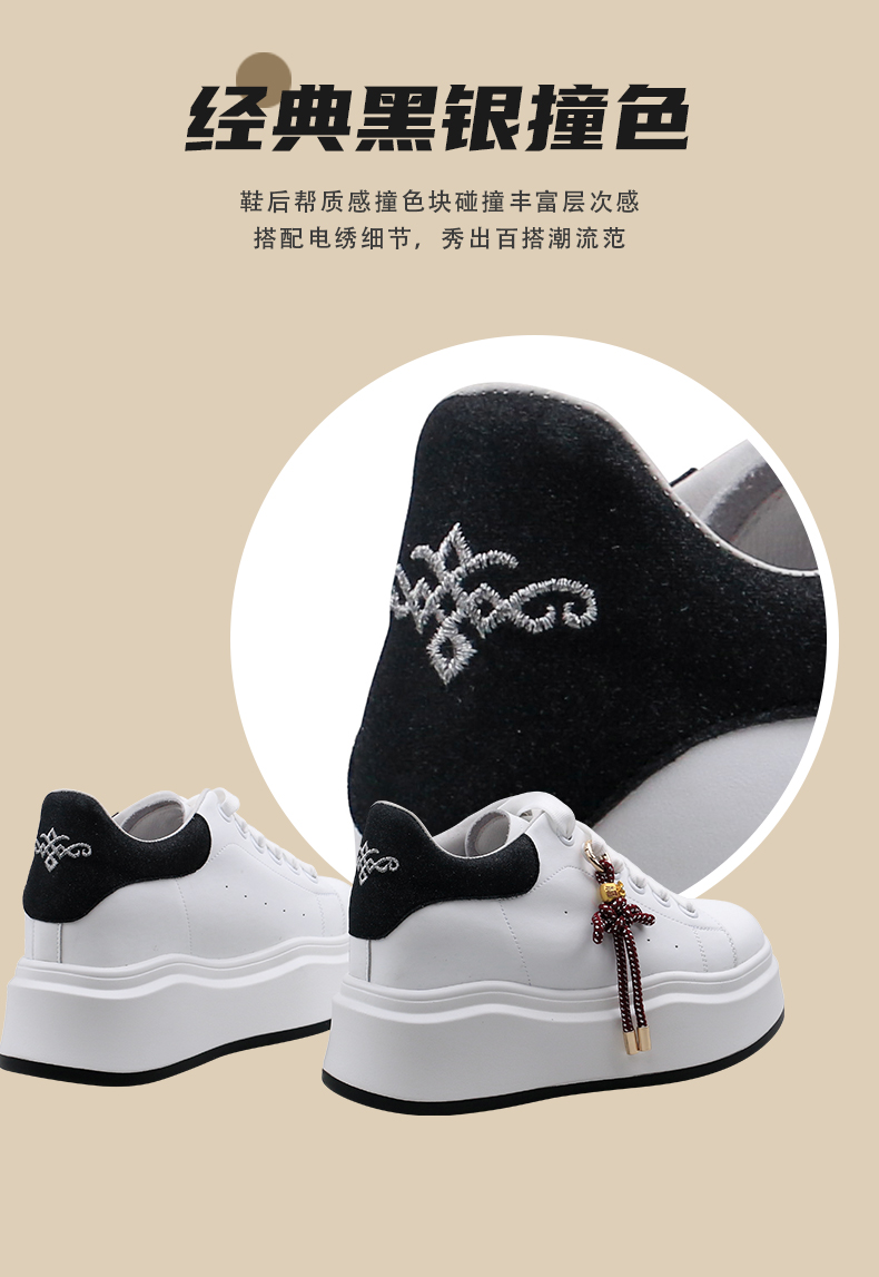Safiya/索菲娅2025中国结小个子内增高厚底百搭休闲麦昆小白鞋