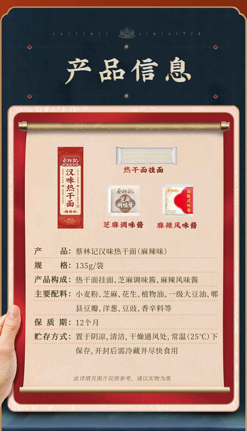【第2件0元】蔡林记麻辣风味热干面一人份135g*4包