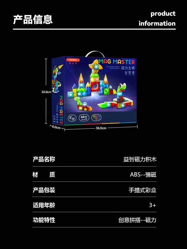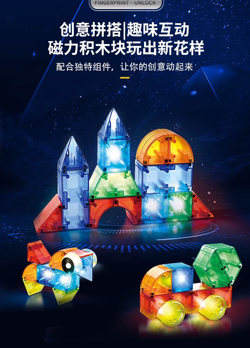 【0基础玩出立体思维 磁力发光积木】Magfun酷彼伴磁力积木 儿童百变磁力模块 可搭建数百种立体造型 高透强磁 培养孩子空间认知 探索光影的神奇