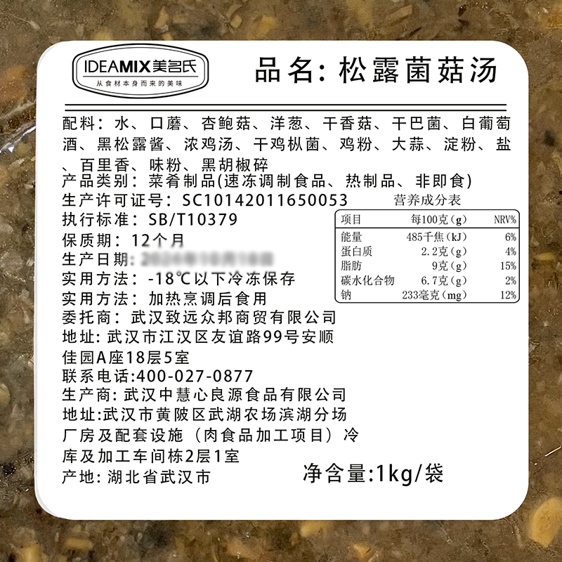 美名氏松露菌菇汤1kg加热即食西式浓汤商用比萨焗饭意面菌菇汤