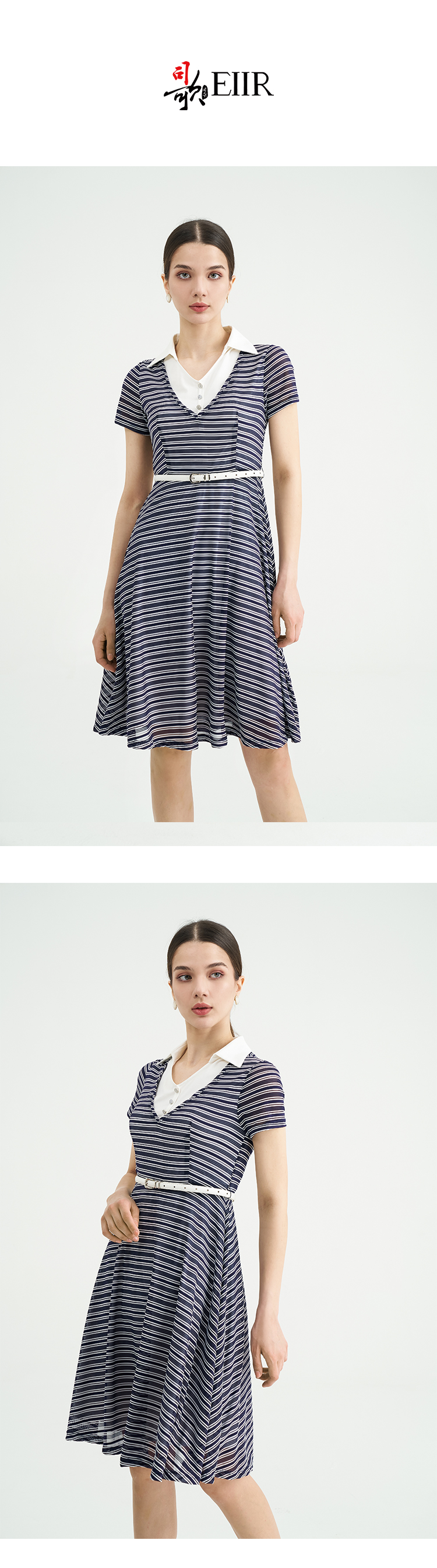 司歌条纹针织连衣裙弹力翻领短袖EA891119X