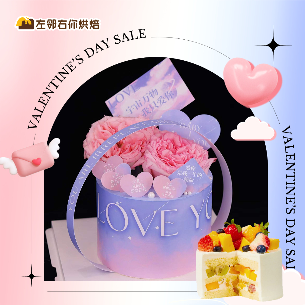 【下架勿动】2022.0804浪漫七夕 | 真鲜花蛋糕 粉色荔枝玫瑰 粉紫玫瑰奶油蛋糕 下架勿理