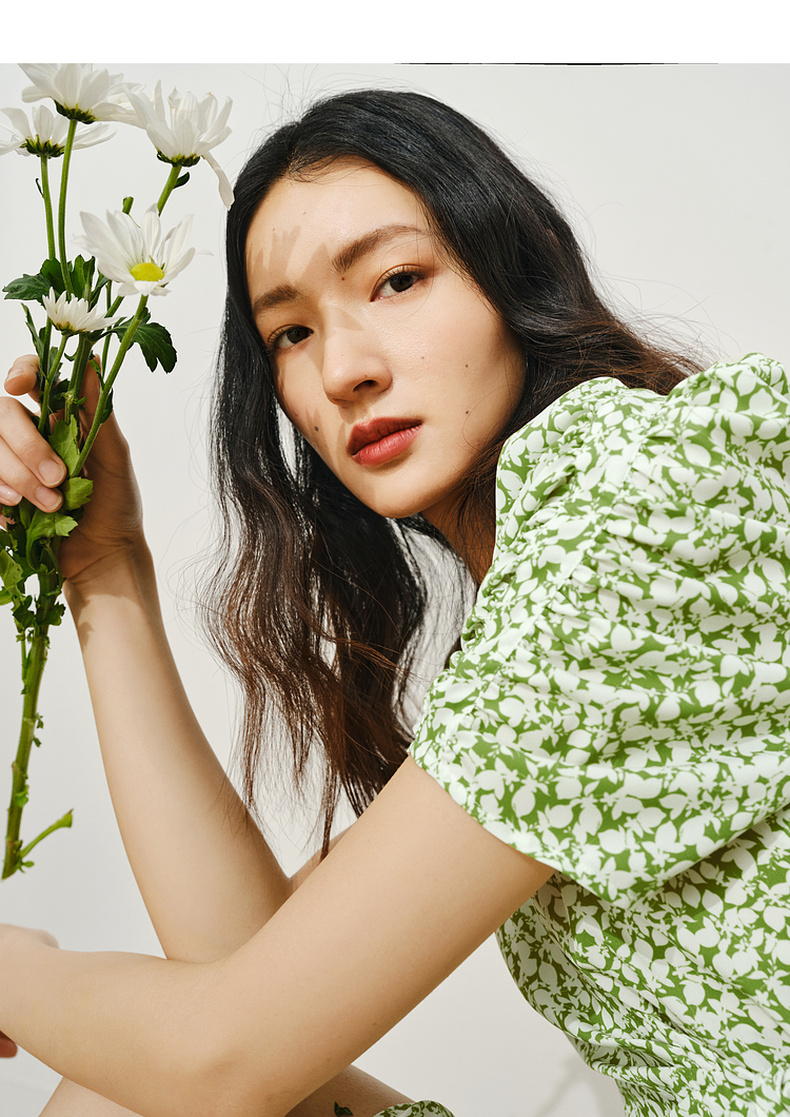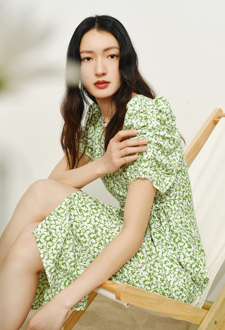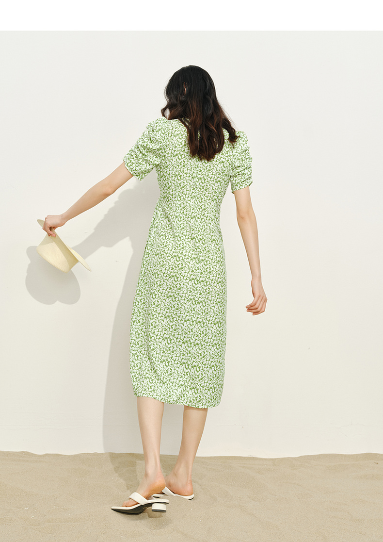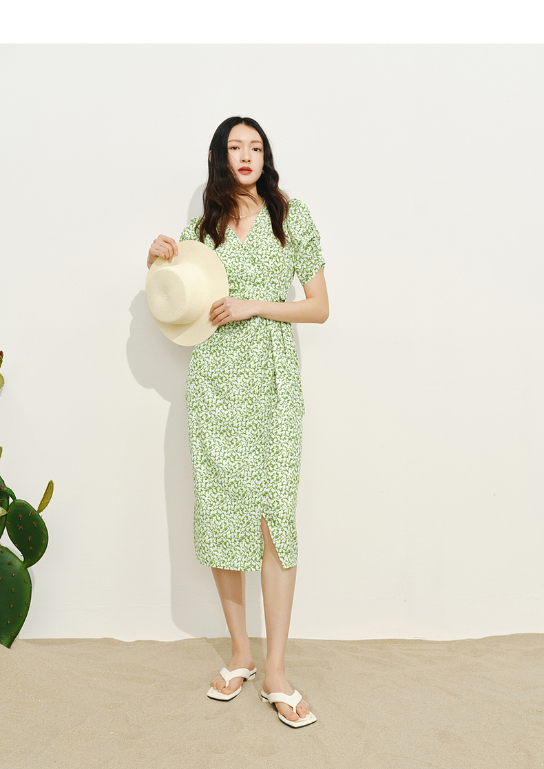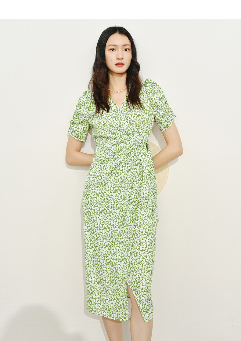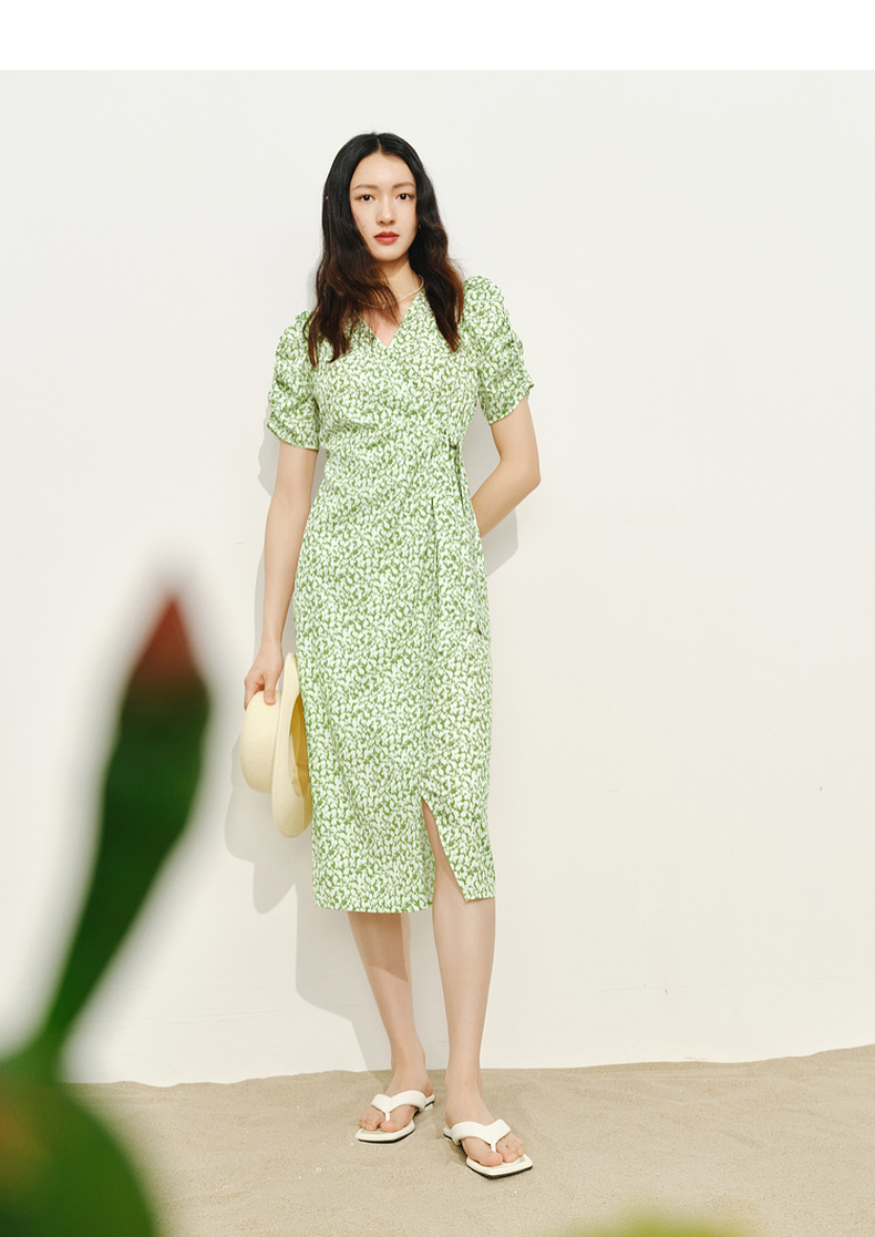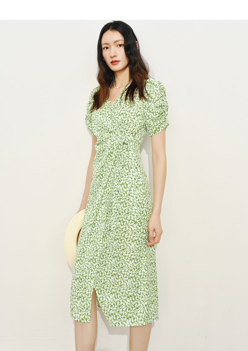 【商场同款】伊芙丽薄荷漫波碎花连衣裙1F4491001