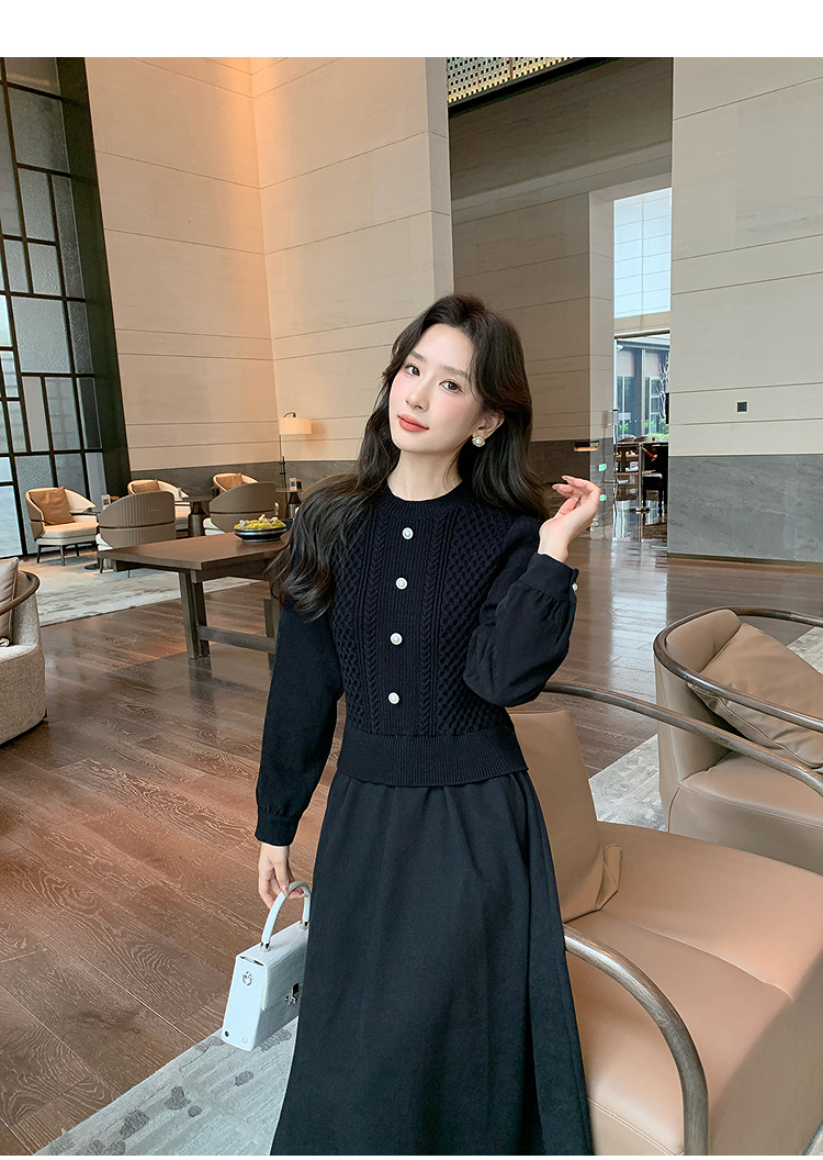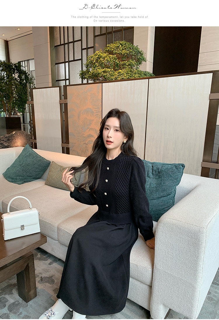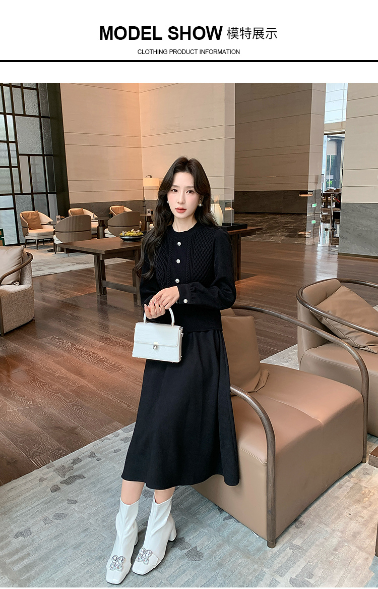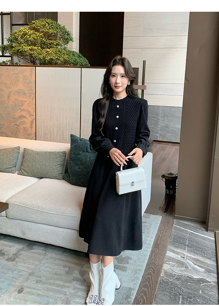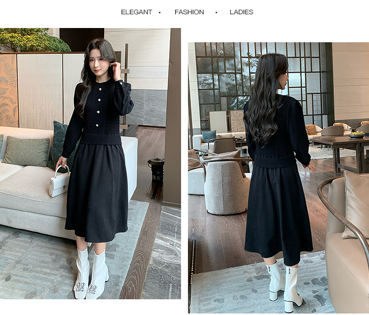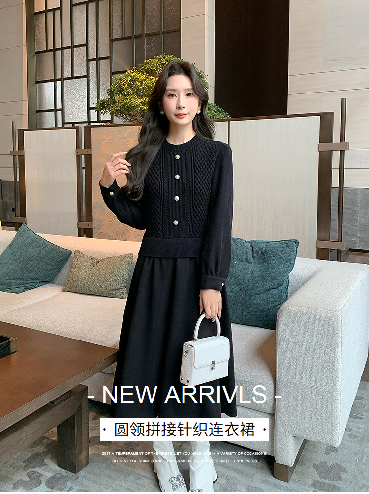 奢姿2024年冬季新款大码女装拼接针织裙子胖妹妹气质圆领连衣裙9944826856