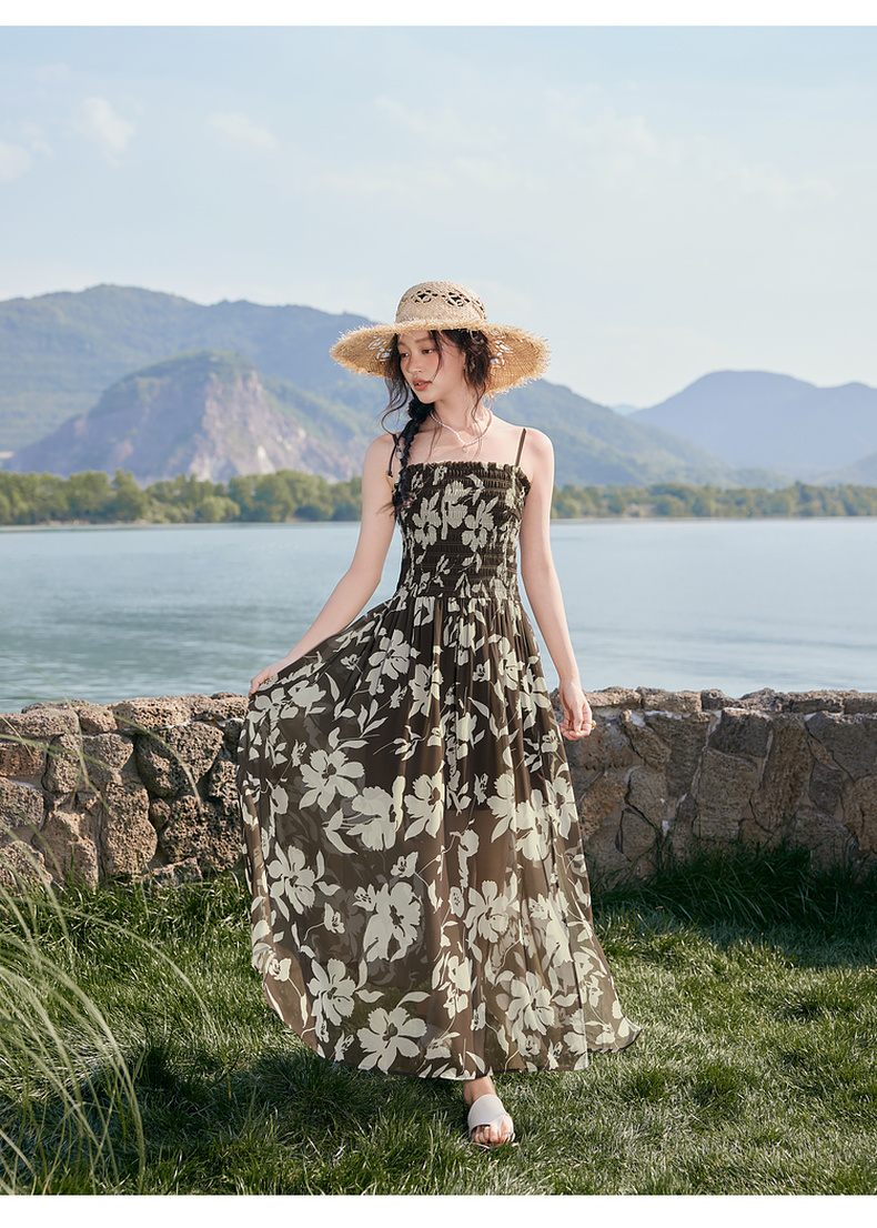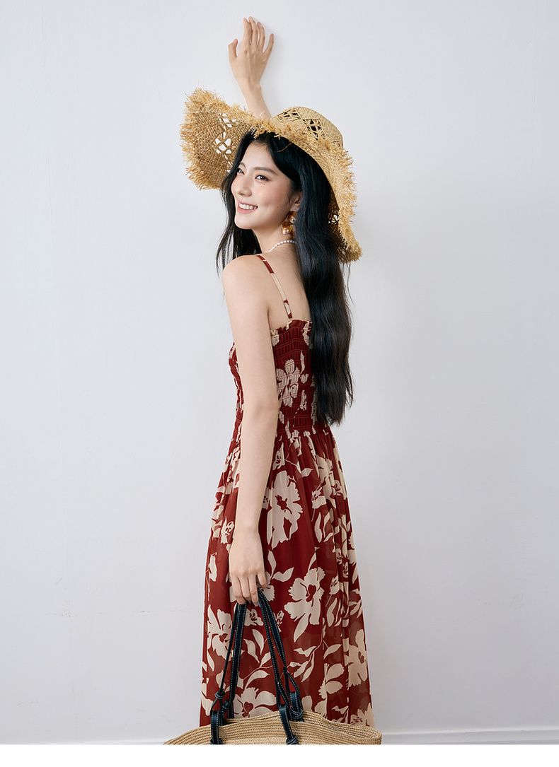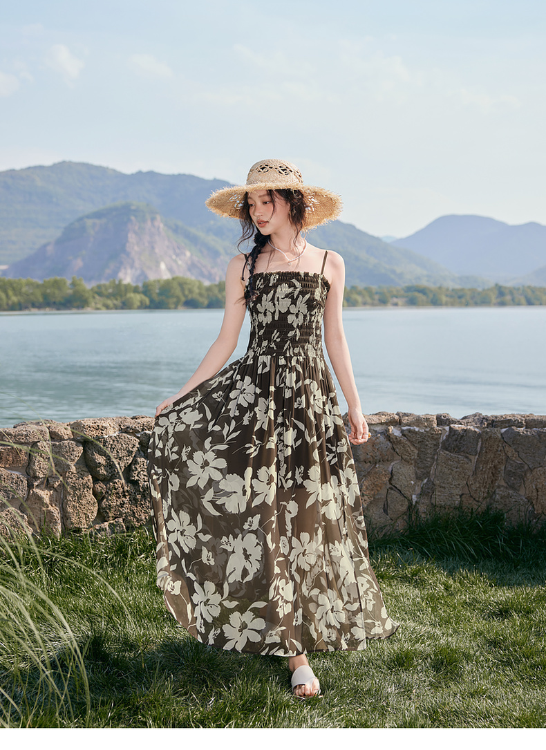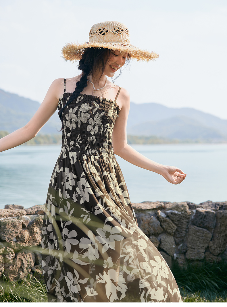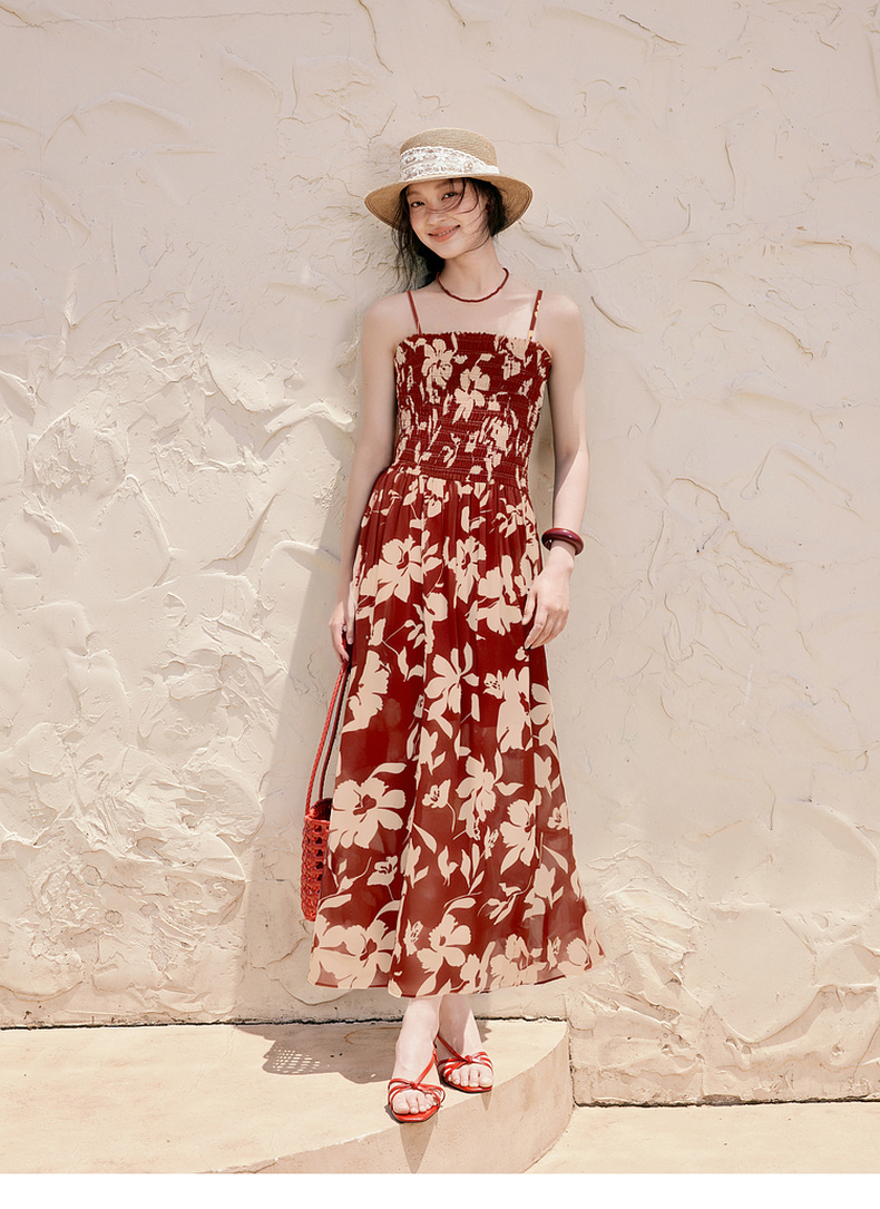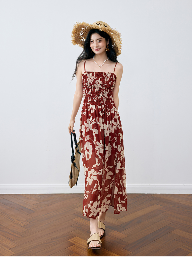 【严选】诗凡黎度假风剪影碎花吊带长裙2025夏新款法式打揽开叉裙摆连衣裙7G6290871