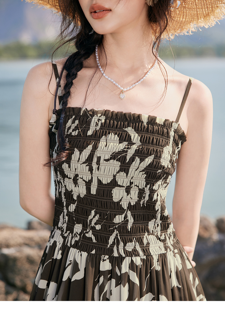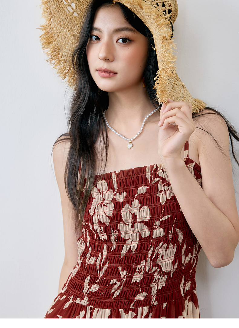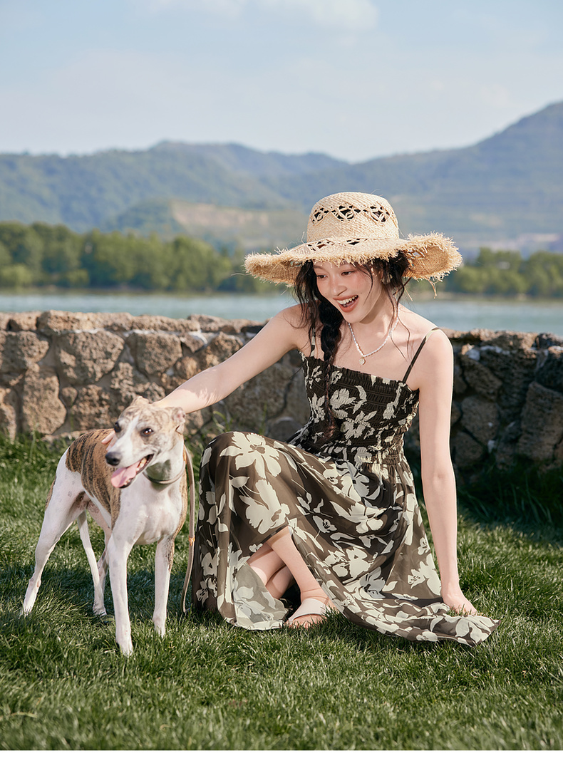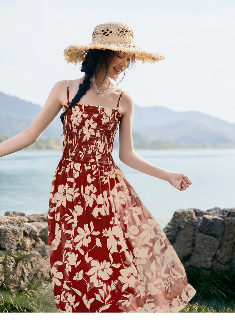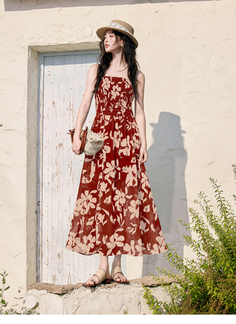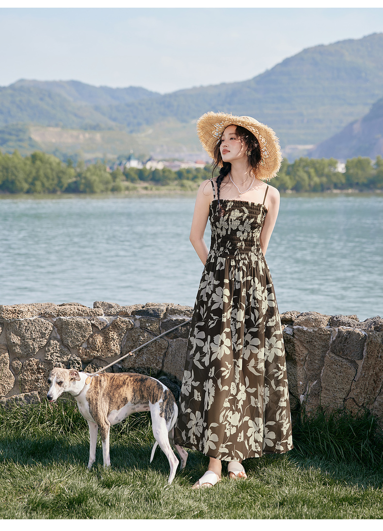 【严选】诗凡黎度假风剪影碎花吊带长裙2025夏新款法式打揽开叉裙摆连衣裙7G6290871