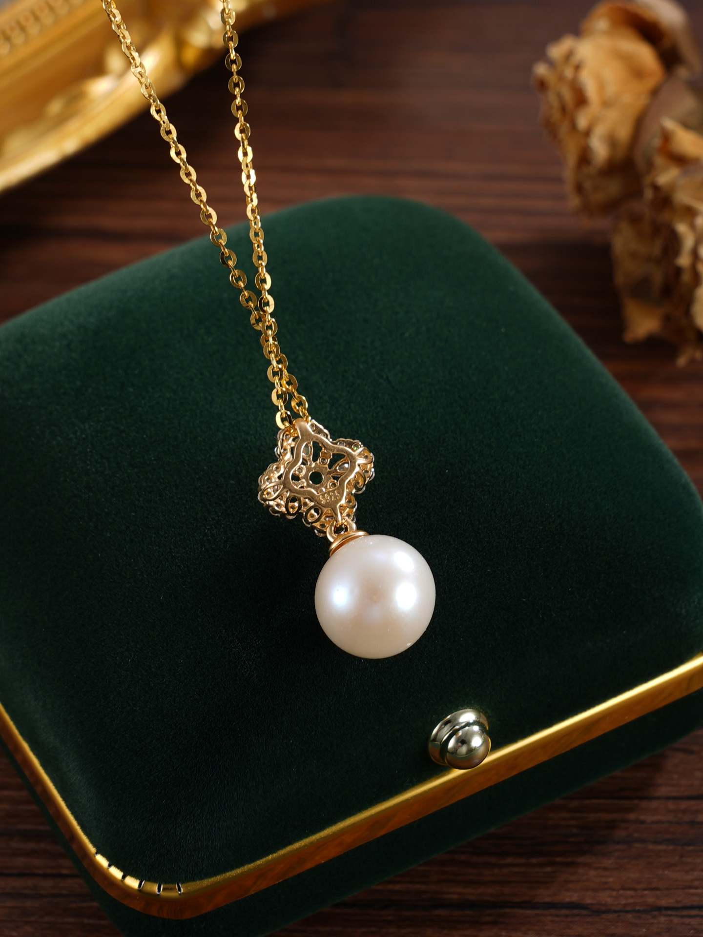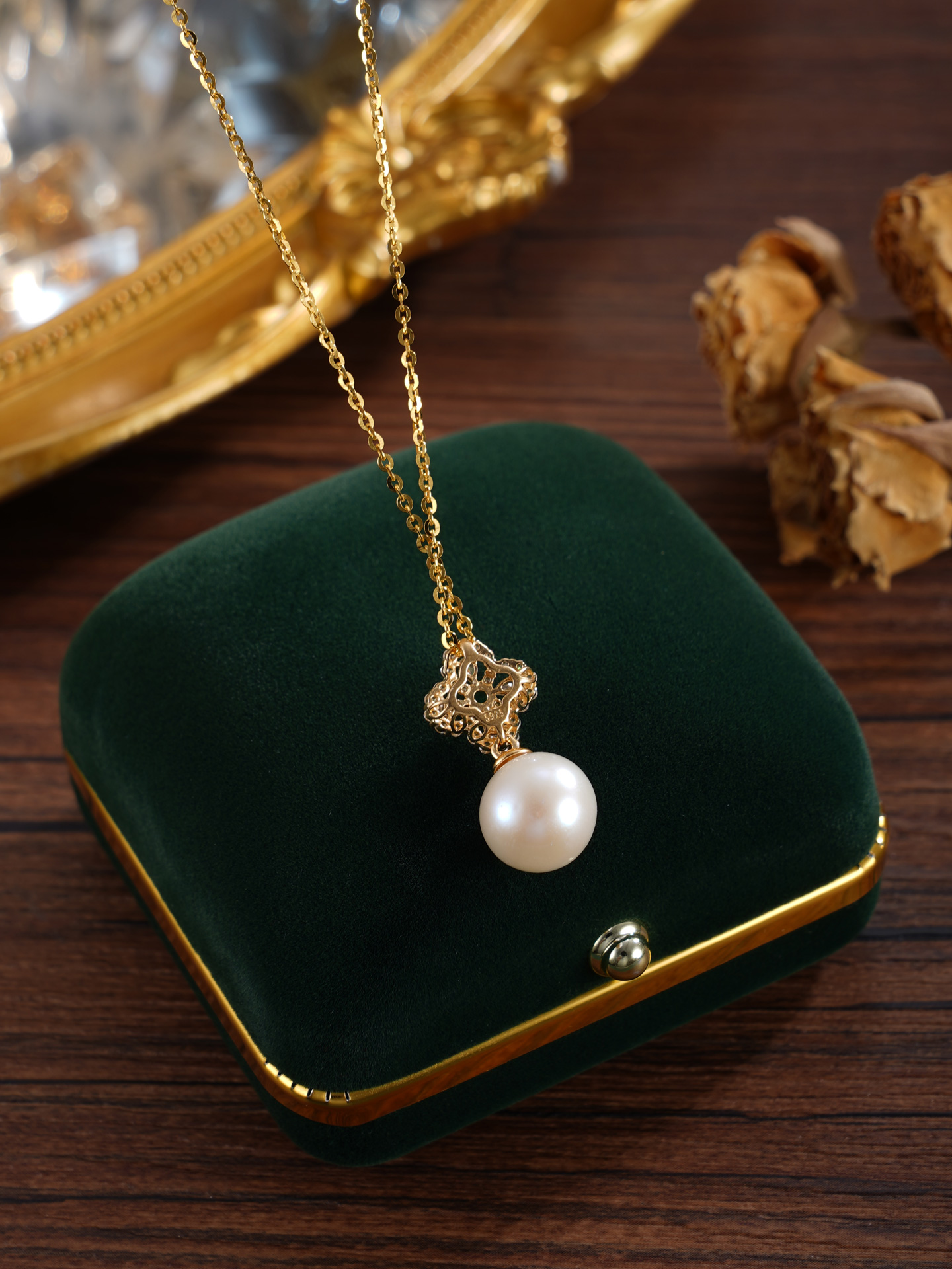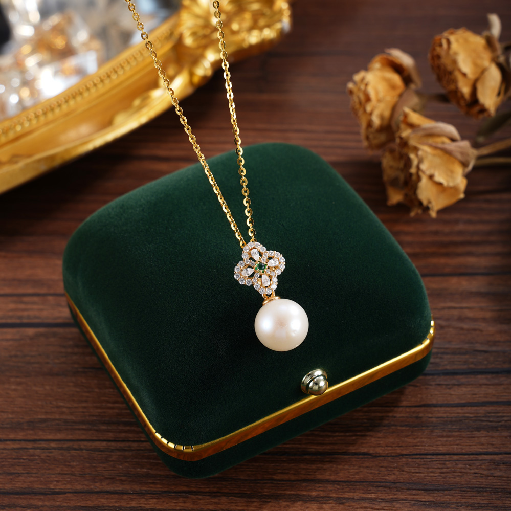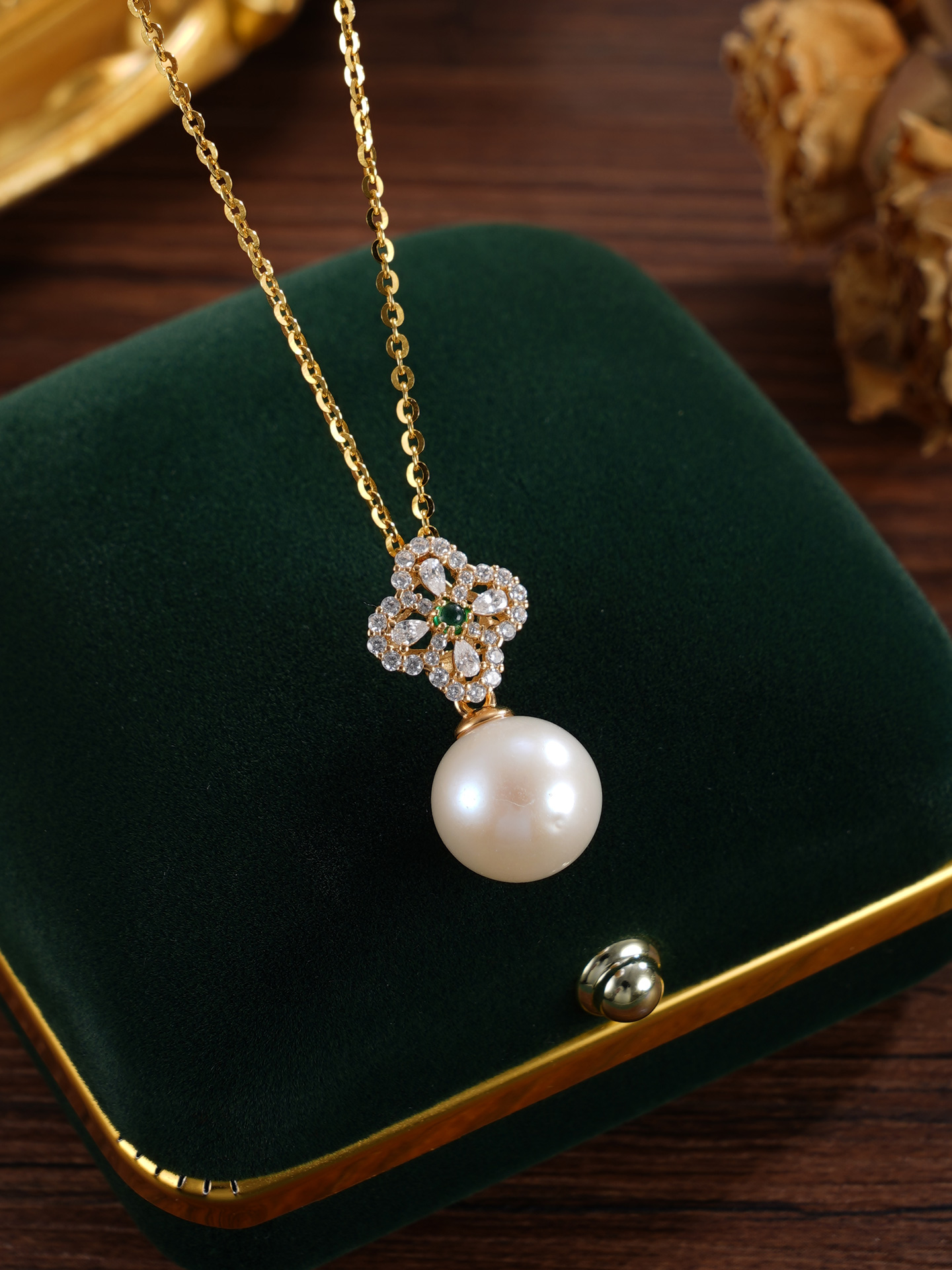 子佩集【四叶情深】银S925珍珠惜王妃套链【P2905】10.7mm珠镀金绿点四叶草2601