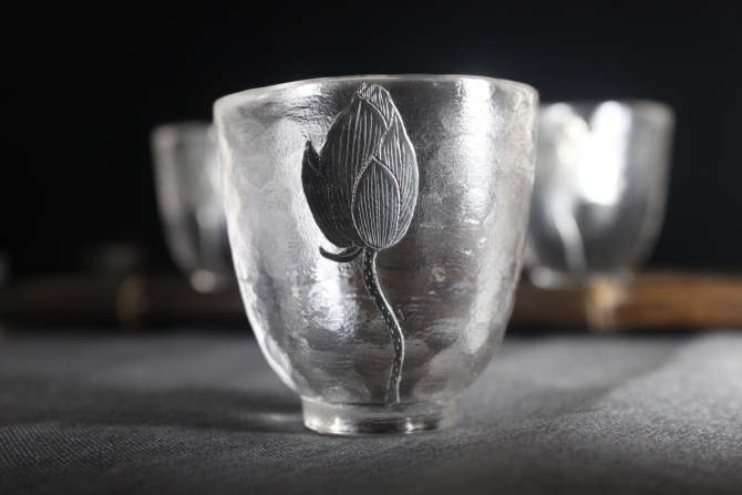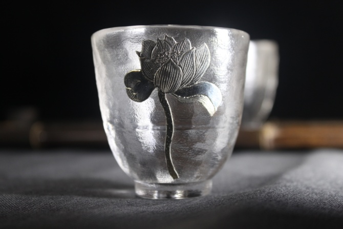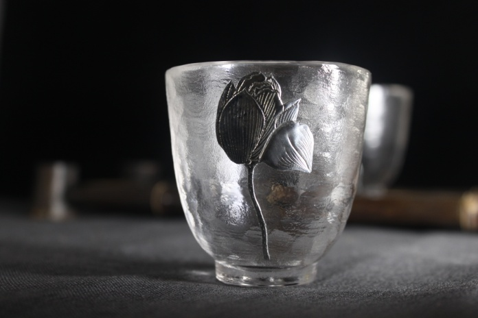 华艺银坊 绽放系列 家用茶杯会客茶杯办公室茶杯 人工无铅玻璃杯 纯银990