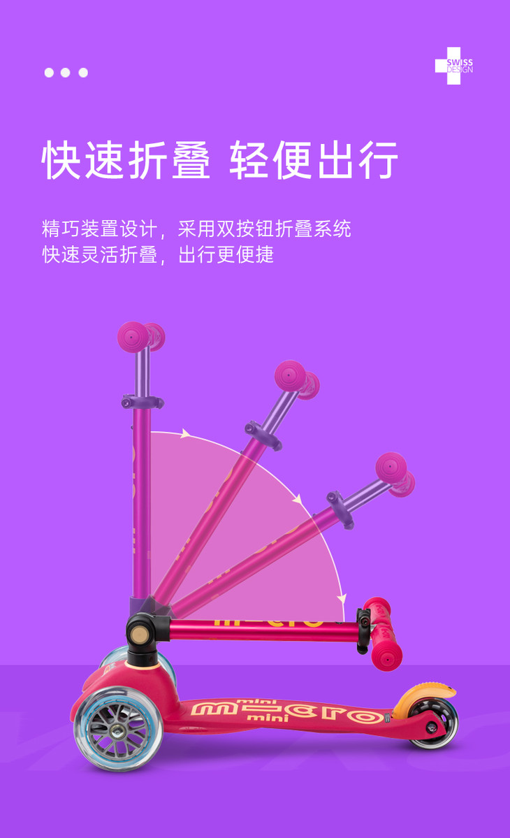 瑞士Micro迈古|Mini 折叠(车轮)LED灯豪华版滑板车 2-5岁