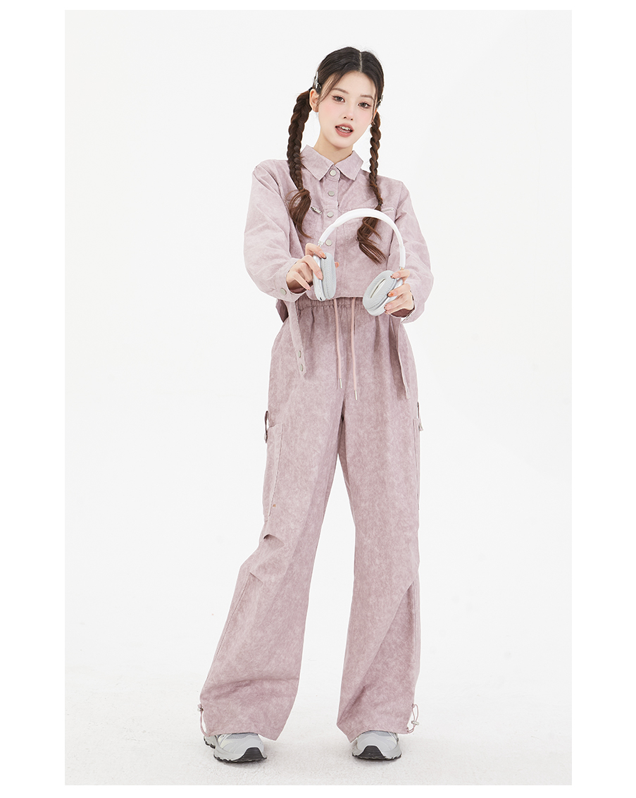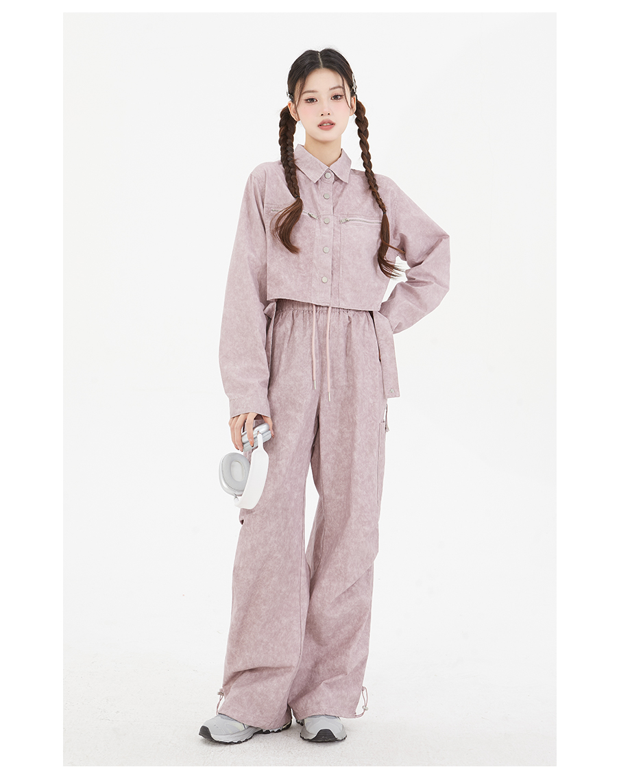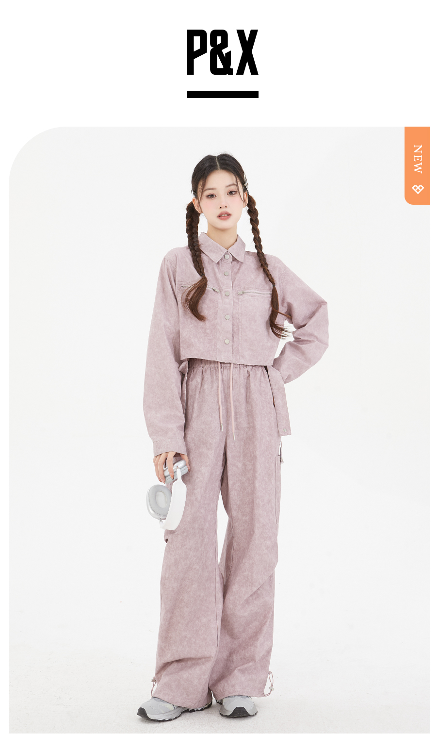 P&X设计师女装 休闲抽绳设计宽松长裤套装短外套825114033 粉色