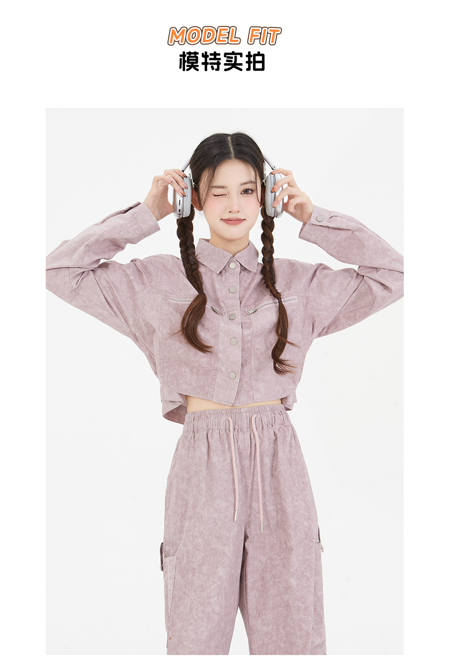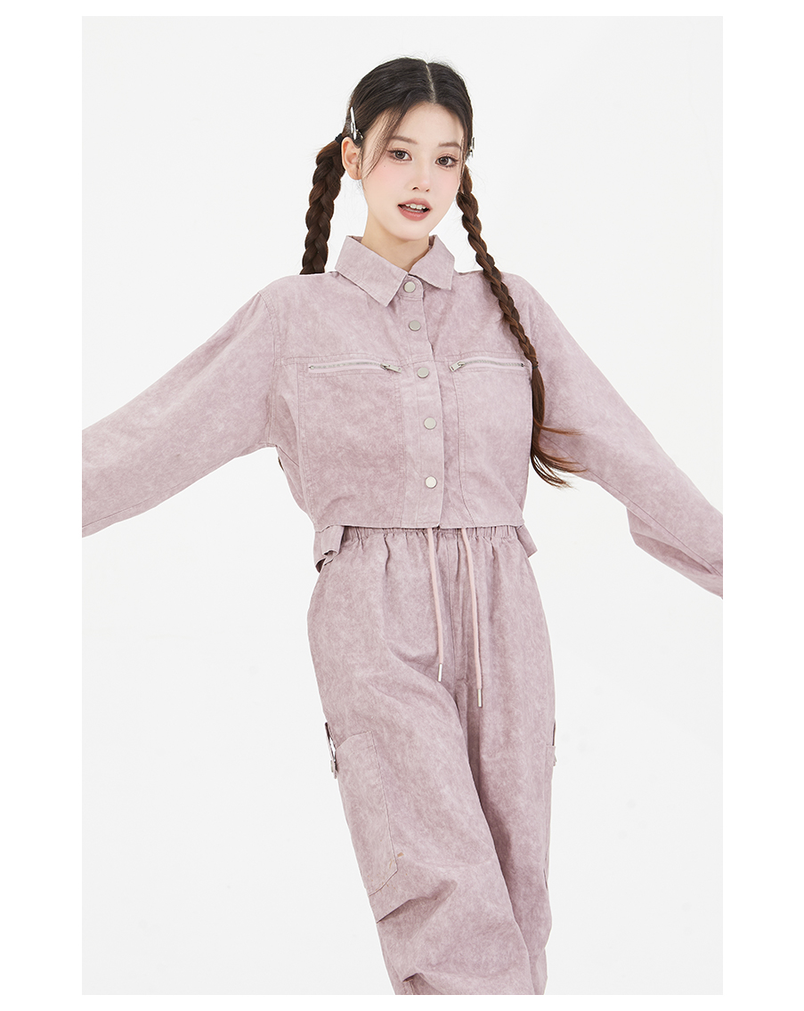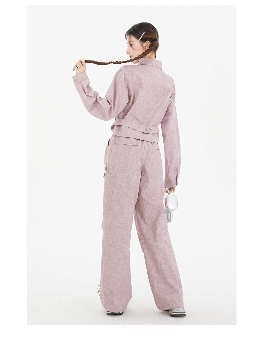 P&X设计师女装 休闲抽绳设计宽松长裤套装短外套825114033 粉色