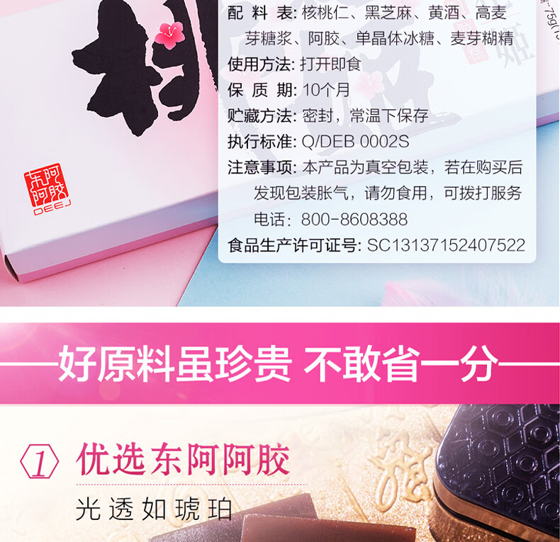东阿阿胶 桃花姬阿胶糕210g礼盒