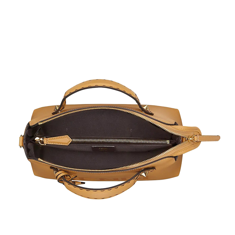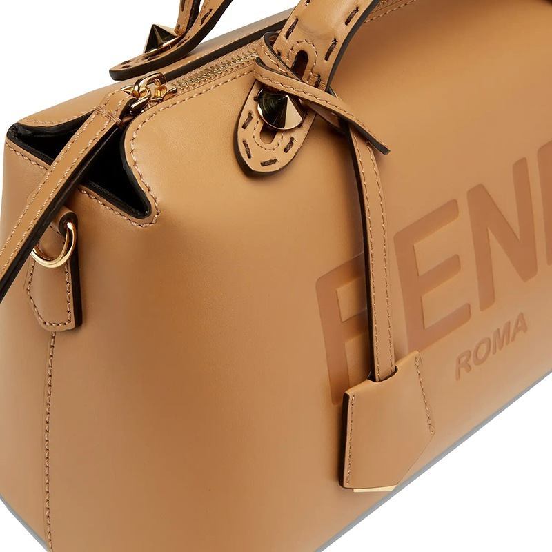 标志性 By The Way 中号波士顿包,蜜色皮革,热印“FENDI ROMA”,拉链开合。