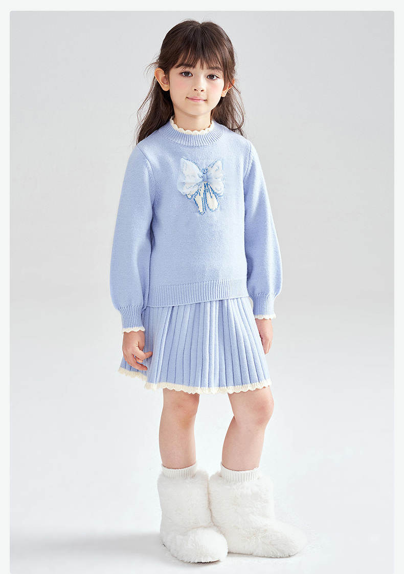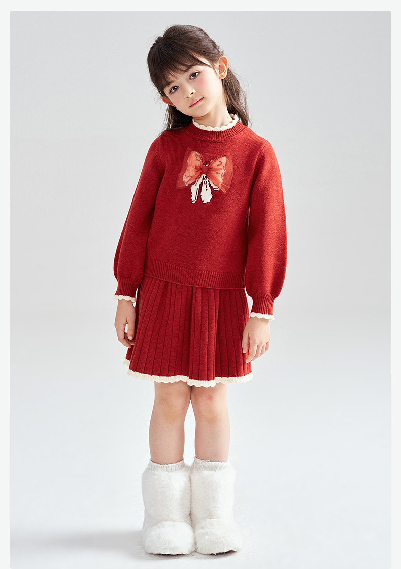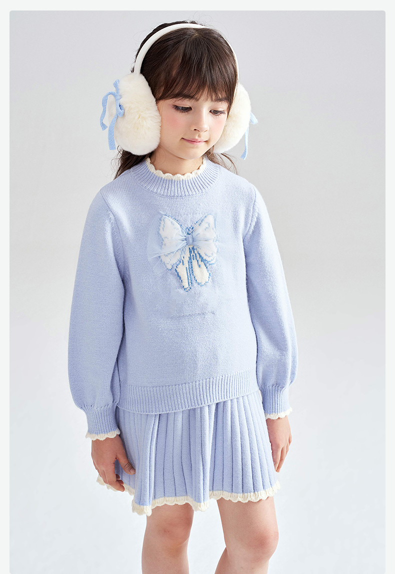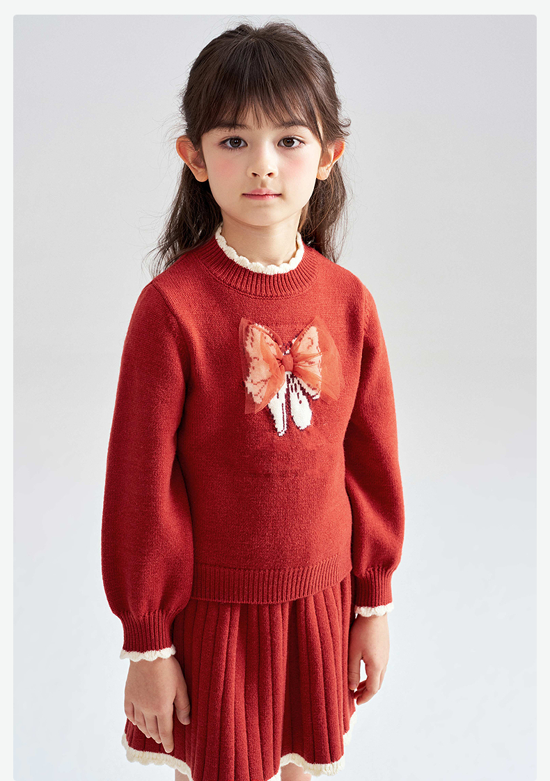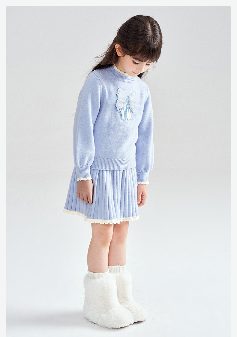 笛莎Deesha 2025冬季女童甜美蝴蝶结提花针织裙套装