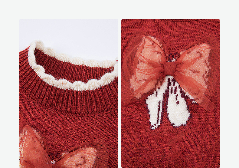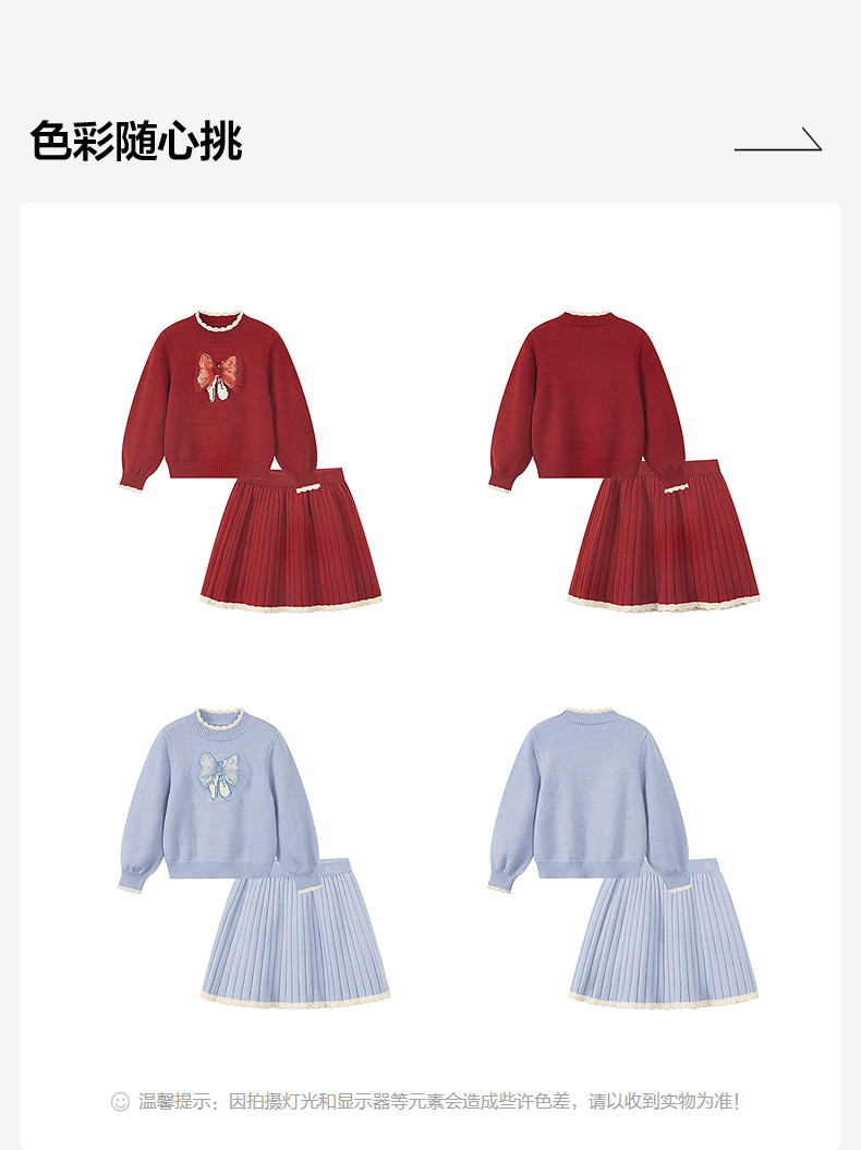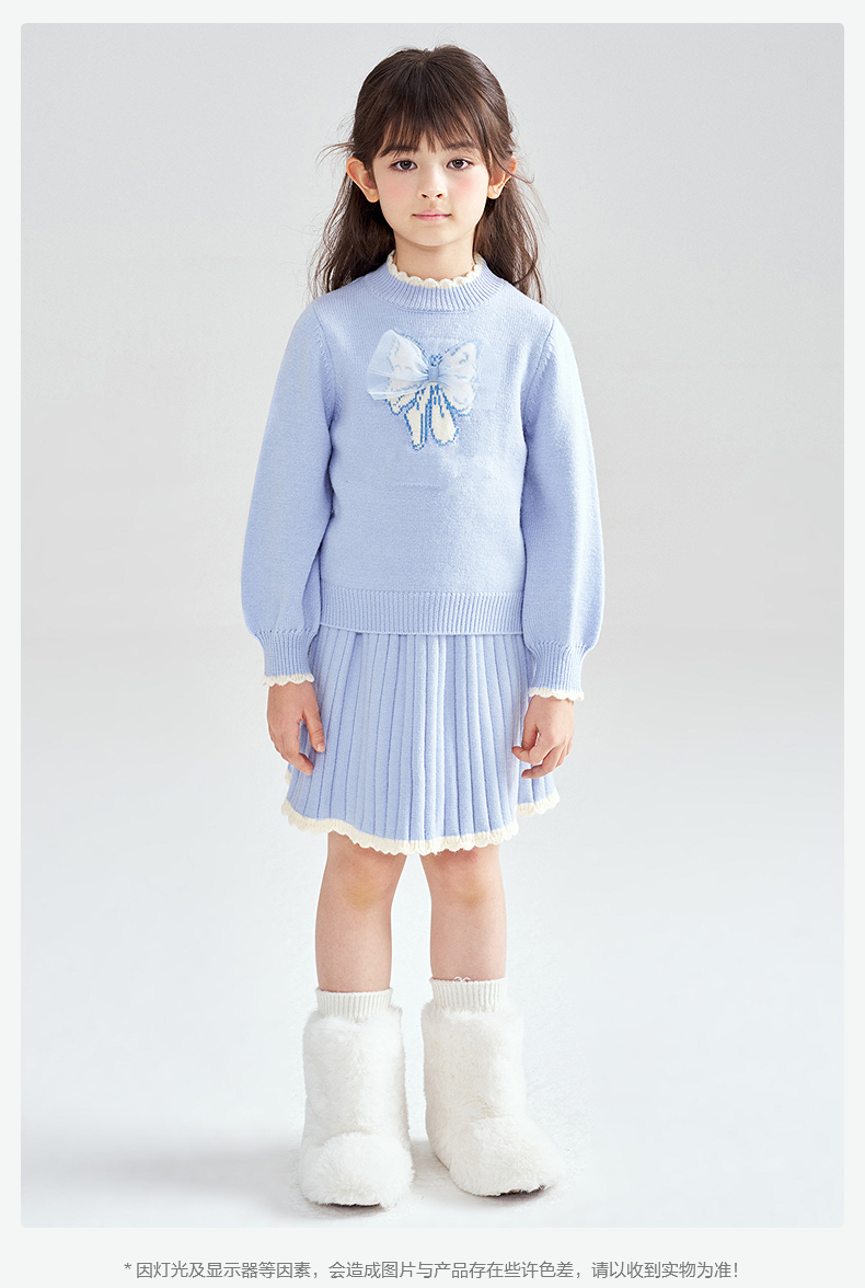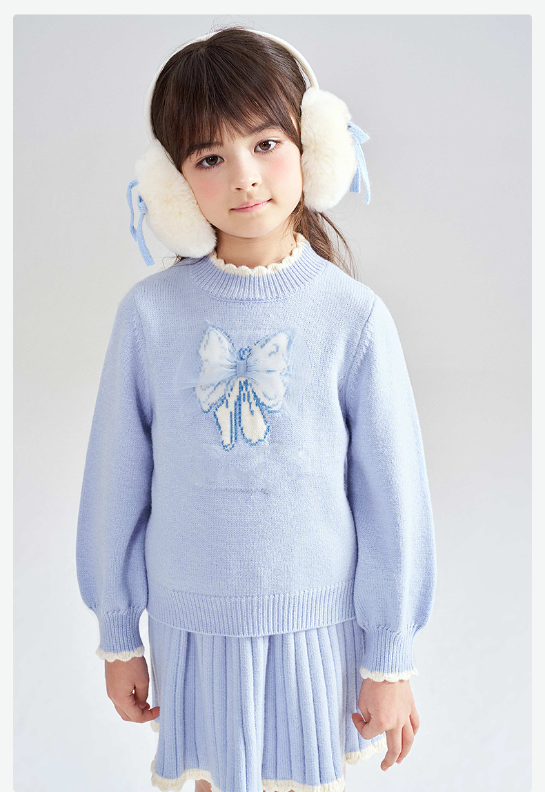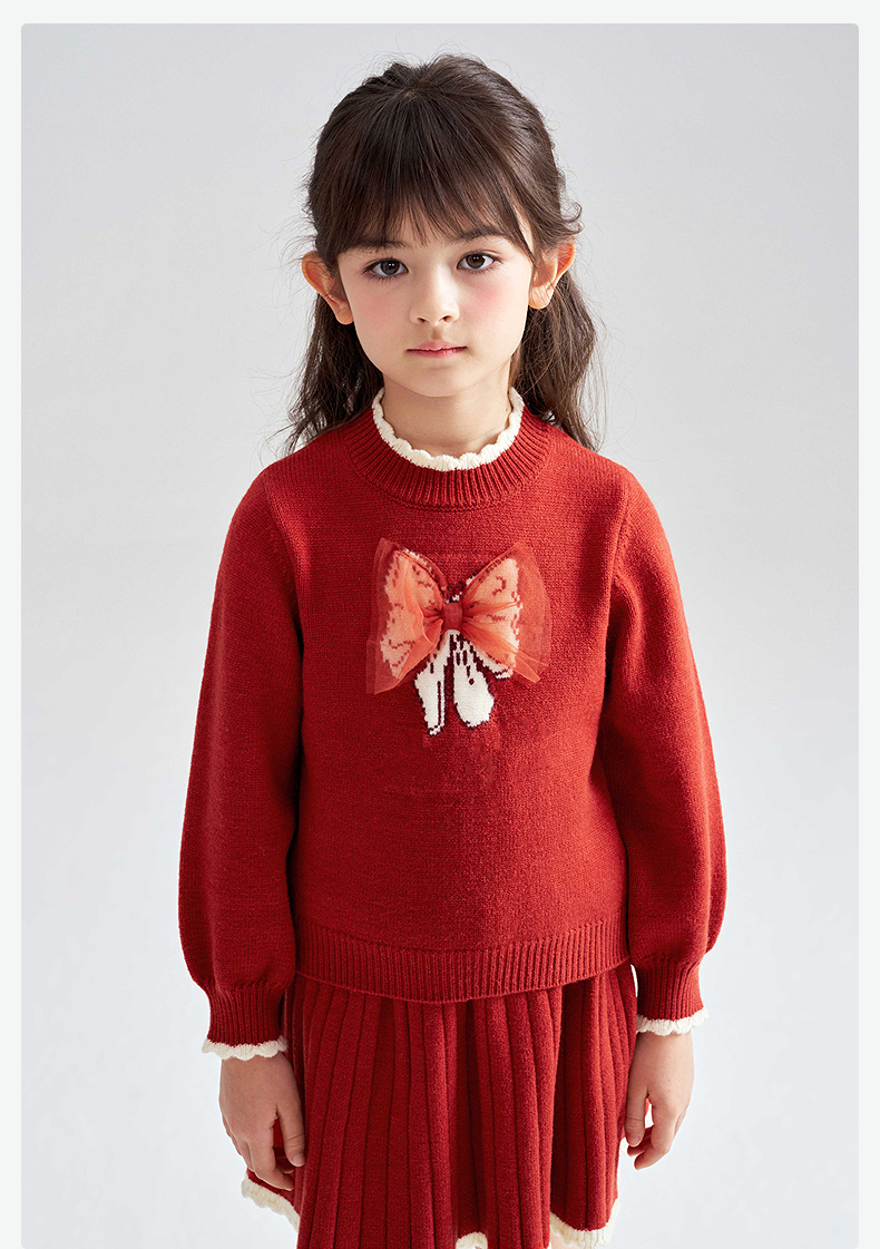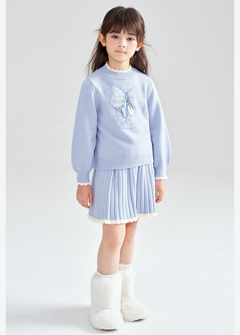 笛莎Deesha 2025冬季女童甜美蝴蝶结提花针织裙套装