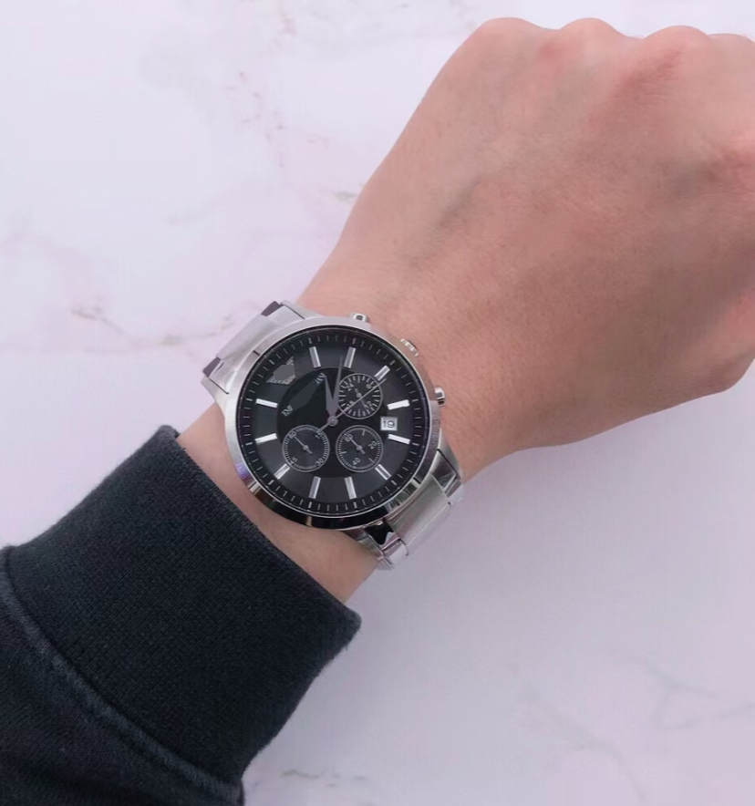 纯原货,保真,支持任何专业机构的拆机验货,深圳FOSS**代工厂流出,表径43mm,厚度11mm,原装石英机芯,不锈钢表带/表壳,蝴蝶双按扣,矿物强化玻璃镜面,日历显示,50米生活防水