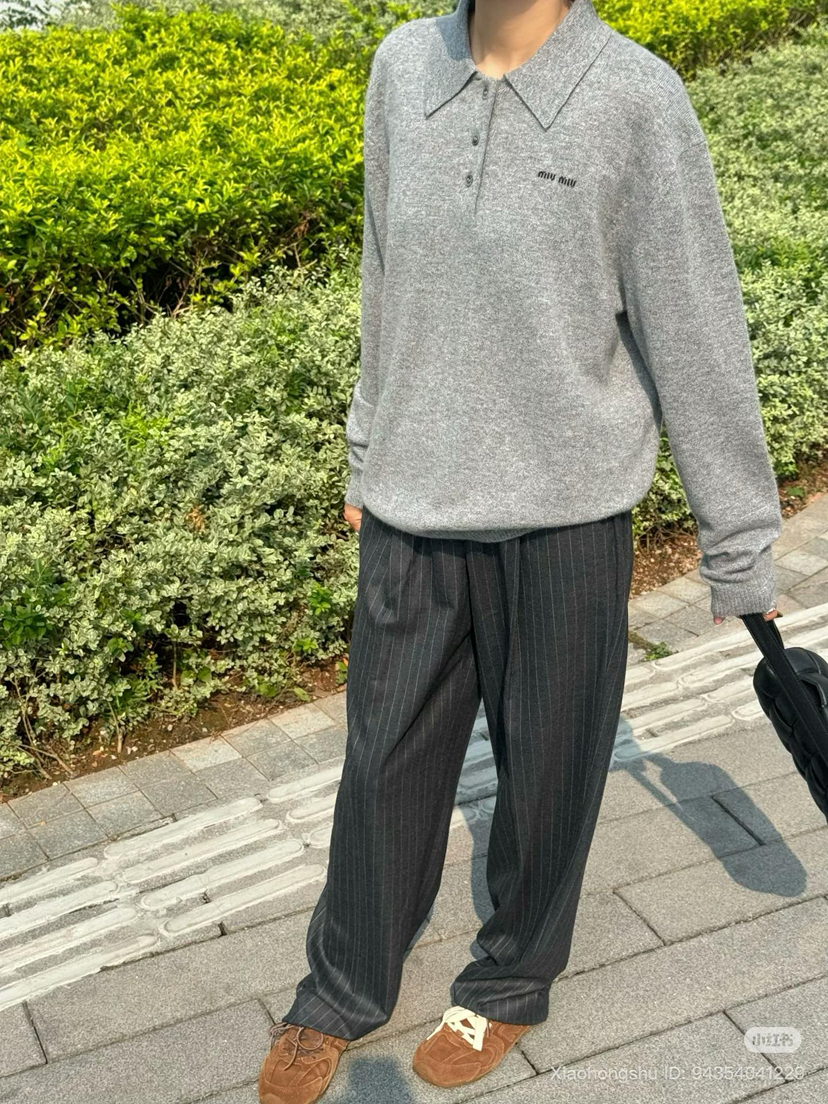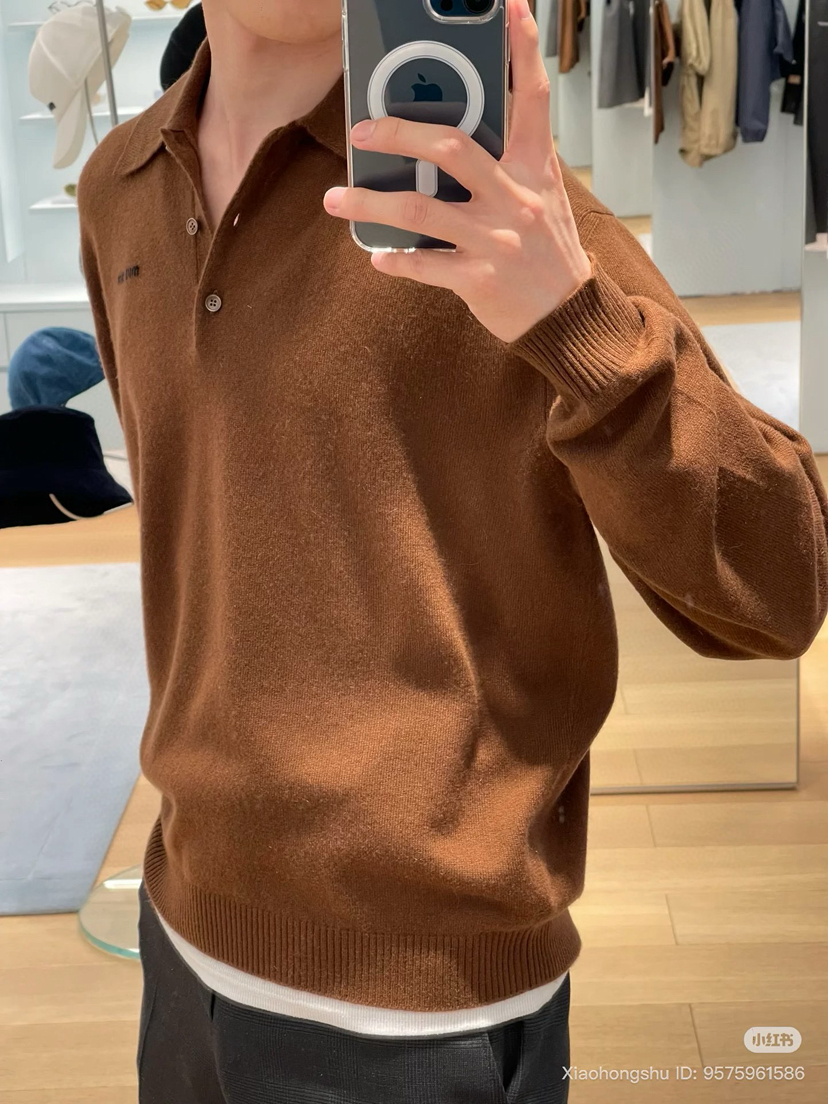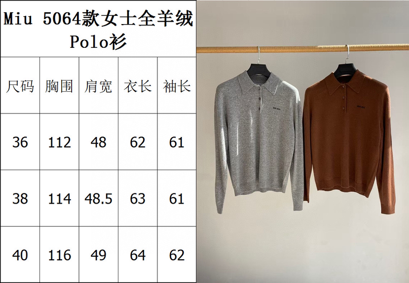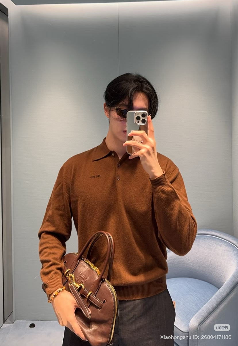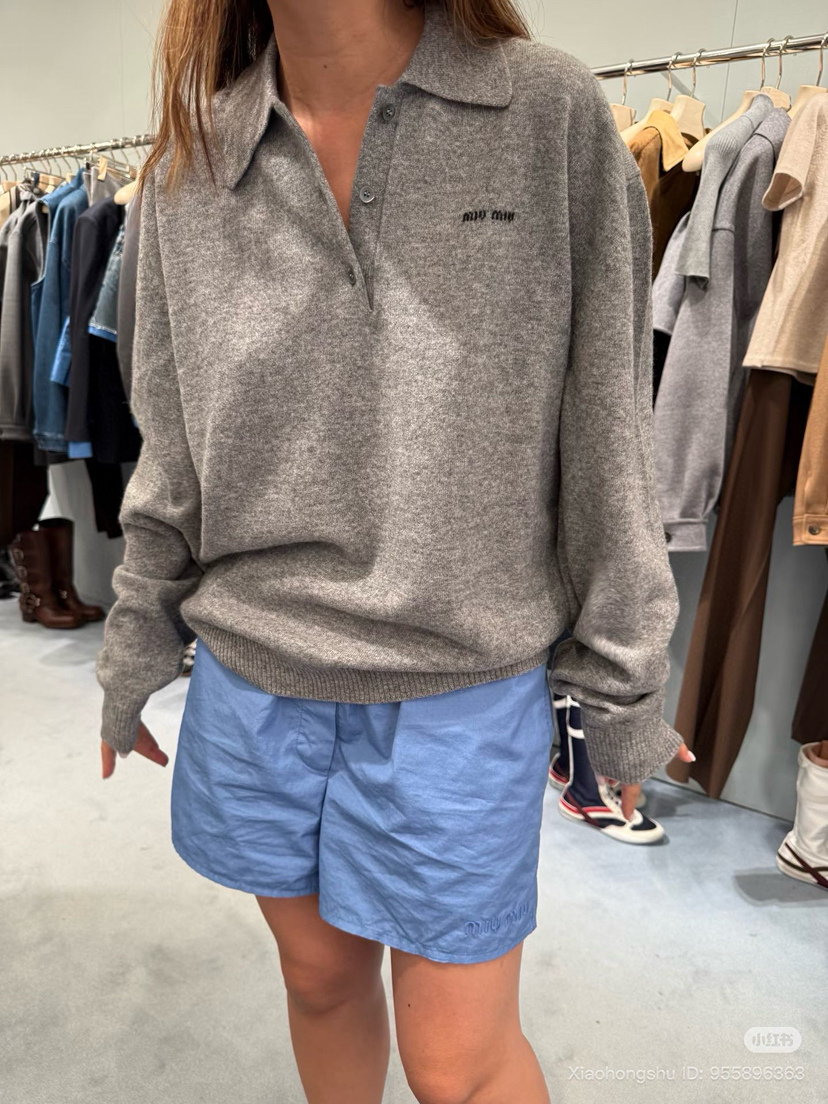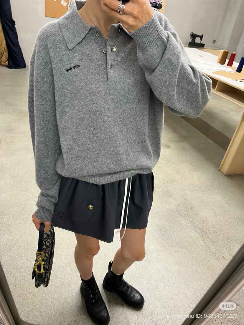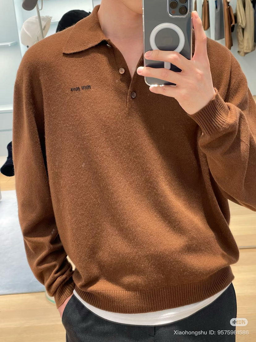 116-4 渠道货 miu 全羊绒 翻领polo针织长袖 女士款 男生也好穿