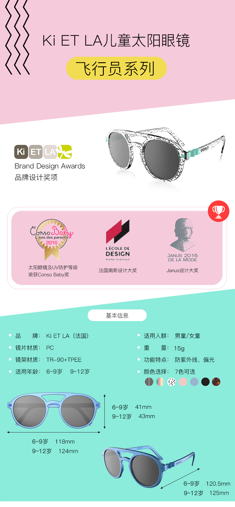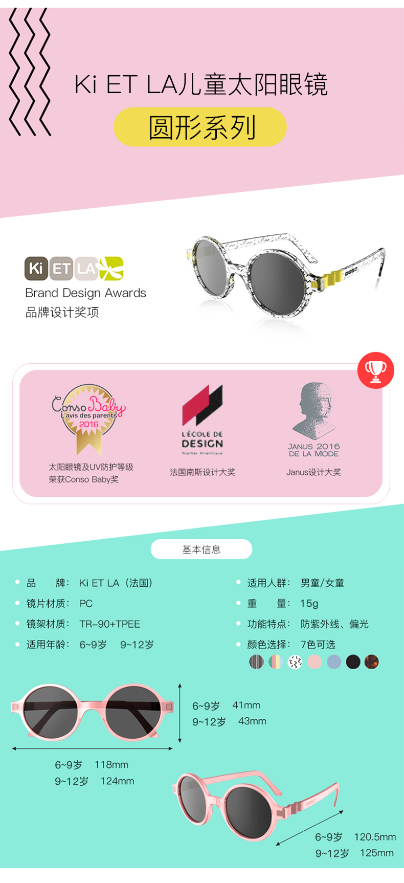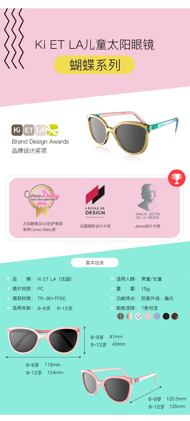 【代发】Ki ET LA法国 6-9岁(蝴蝶/圆形/飞行员)儿童防晒防紫外线太阳镜