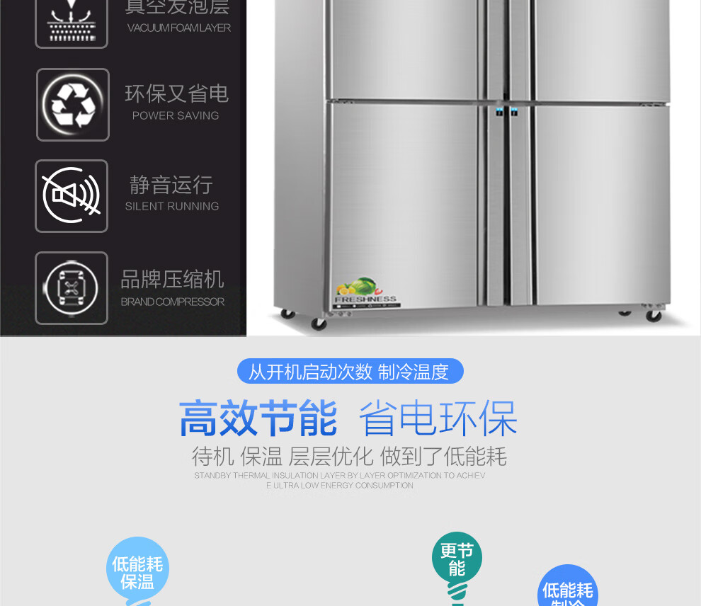 欧驰宝风冷冷冻柜饭店餐饮店后厨 不锈钢厨房冰箱六开门商用冰柜 【1800*680*1930】