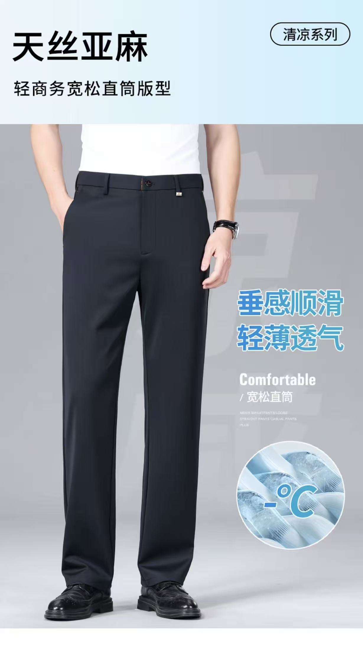 【专柜撤柜】皮尔卡丹 春夏亚麻+桑蚕丝商务休闲裤 男士直筒西裤518