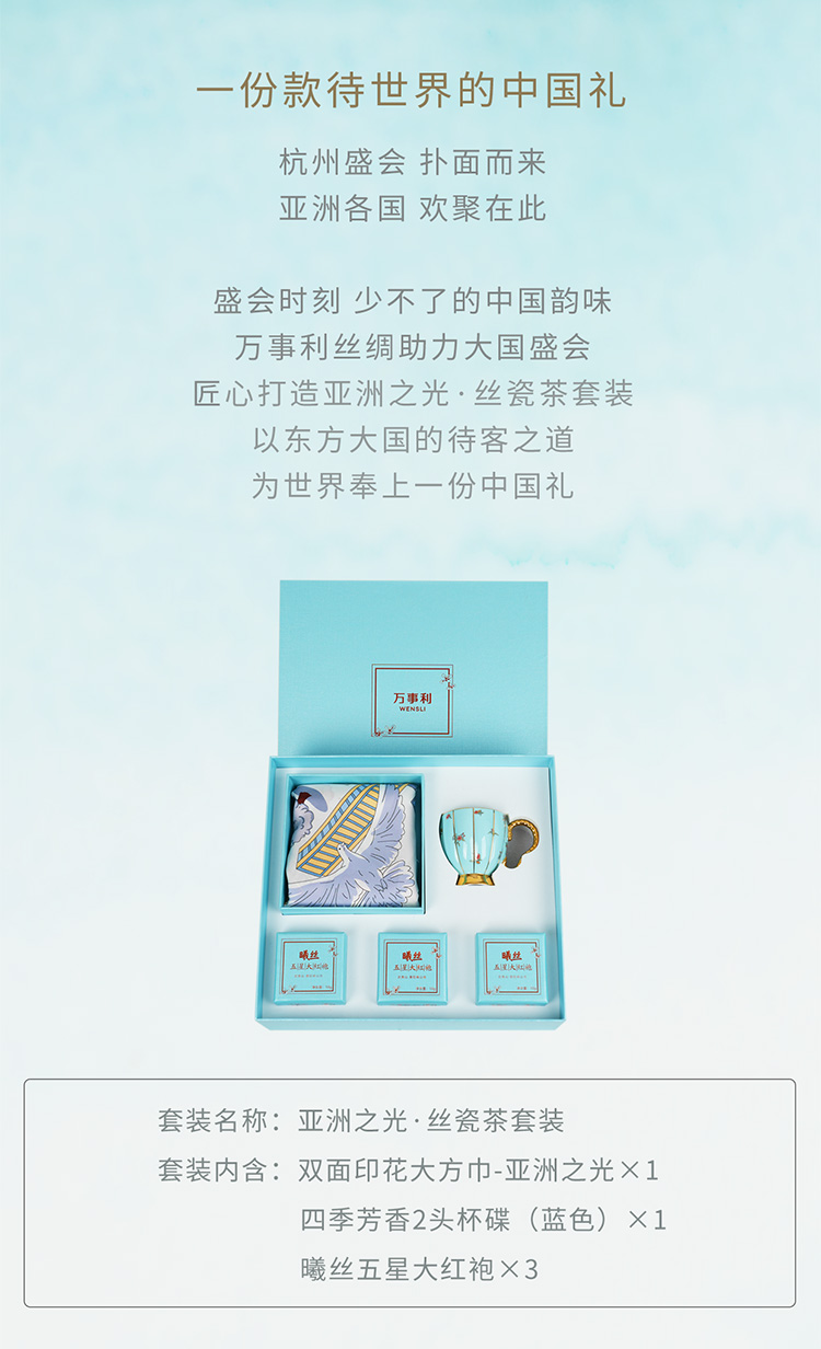 万事利“亚洲之光”丝瓷茶套装礼盒