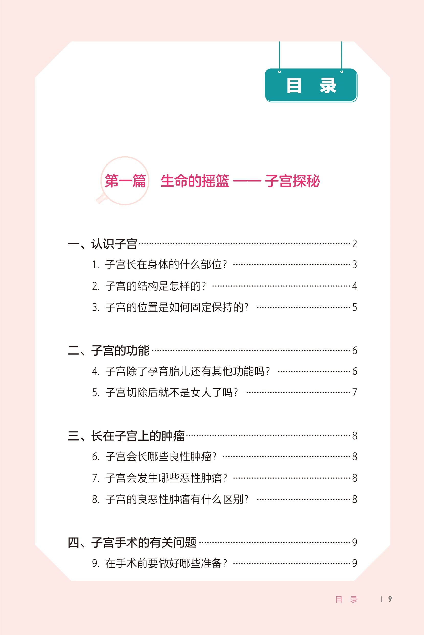 本书内容全部采用问答的形式,言简意赅,实用易读,全书共5篇,37个部分,内容包括:认识子宫、子宫的功能、长在子宫上的肿瘤、子宫手术的有关问题、子宫肌瘤相关问题、子宫肉瘤相关问题、子宫内膜癌相关问题、妊娠滋养细胞疾病相关问题等。内容全面,图文并茂,方便查阅使用。