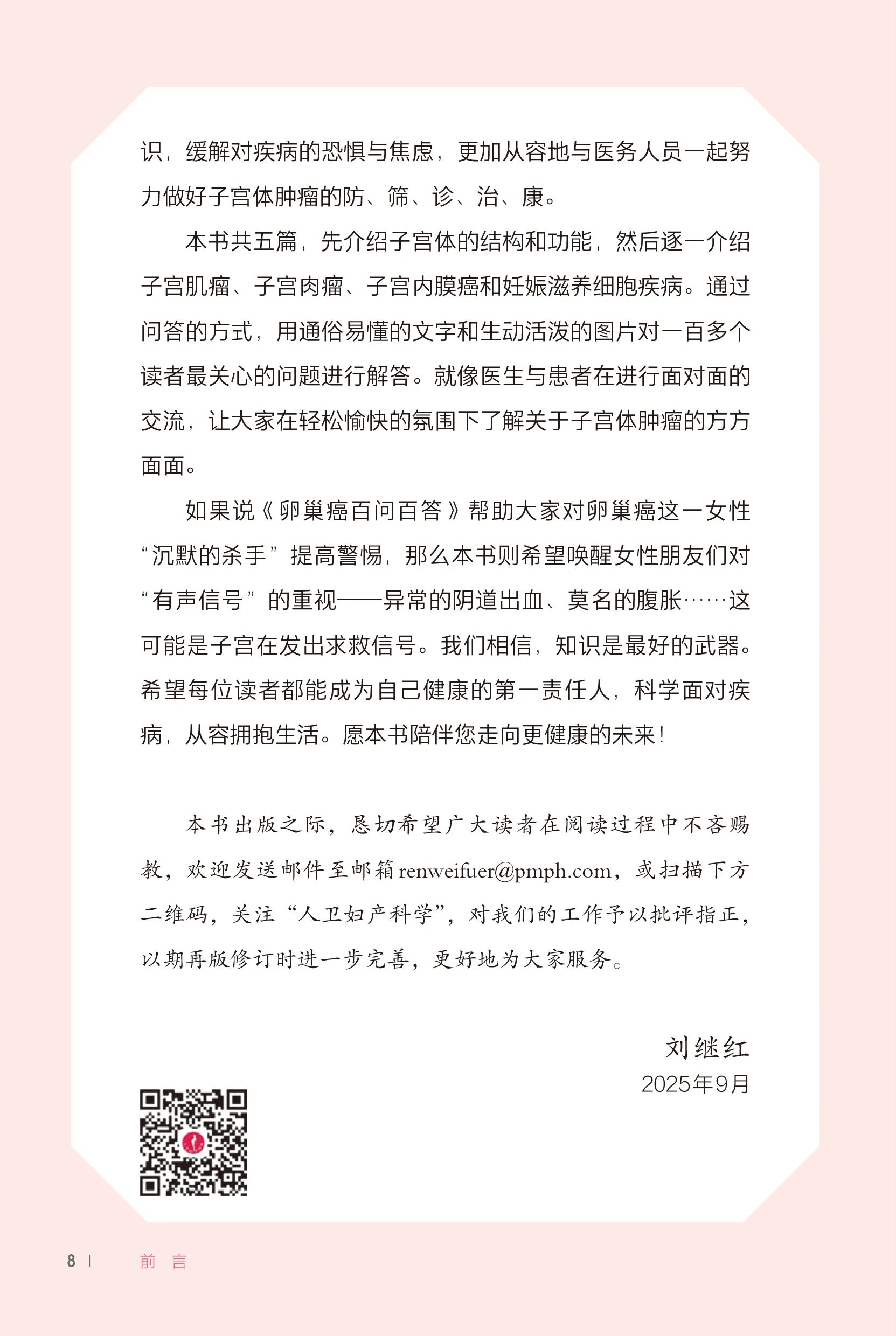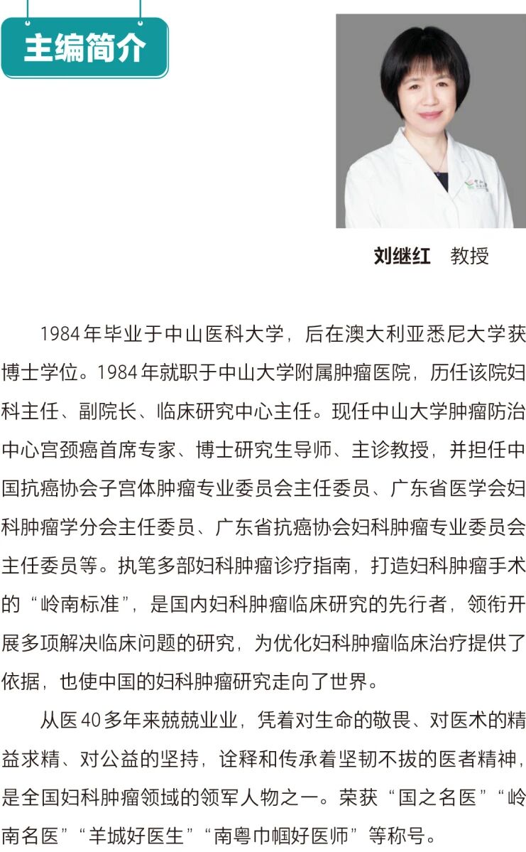 主编刘继红教授所带领团队在妇科肿瘤领域十分权威,具有丰富的临床经验及编写经验,致力传播科学预防、诊疗知识,呵护女性子宫健康。
